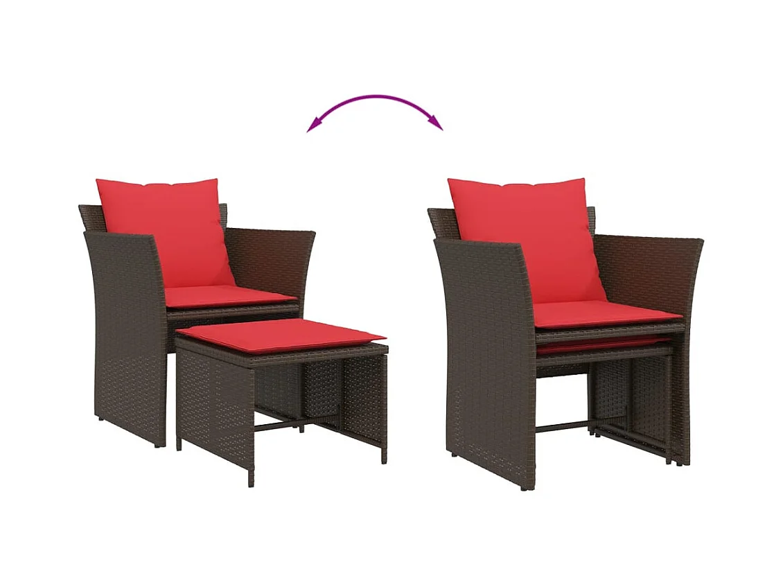 Chaise de jardin avec tabouret marron résine tressée