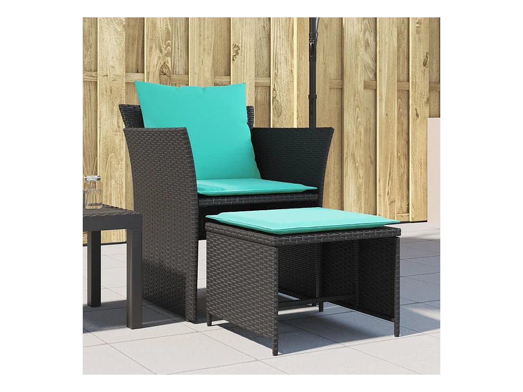 Ensemble de bistro 3 pcs et coussins noir résine tressée acacia