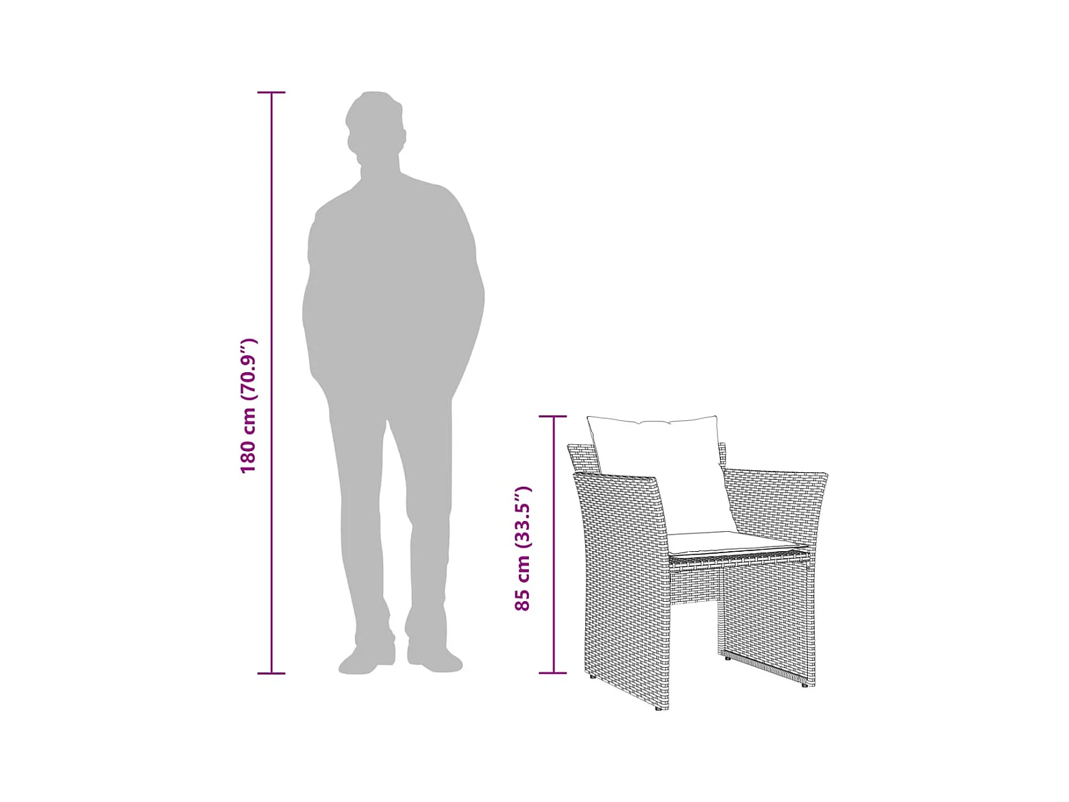 Ensemble de bistro de jardin 9 pcs coussins noir poly rotin
