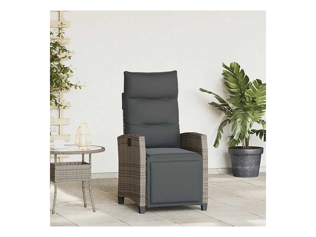 Fauteuil inclinable de jardin avec coussins gris résine tressée