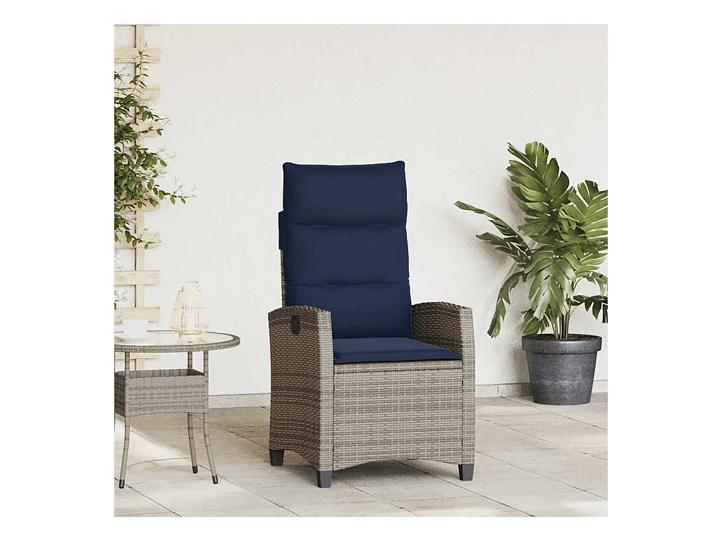 Fauteuil inclinable de jardin avec coussins gris résine tressée