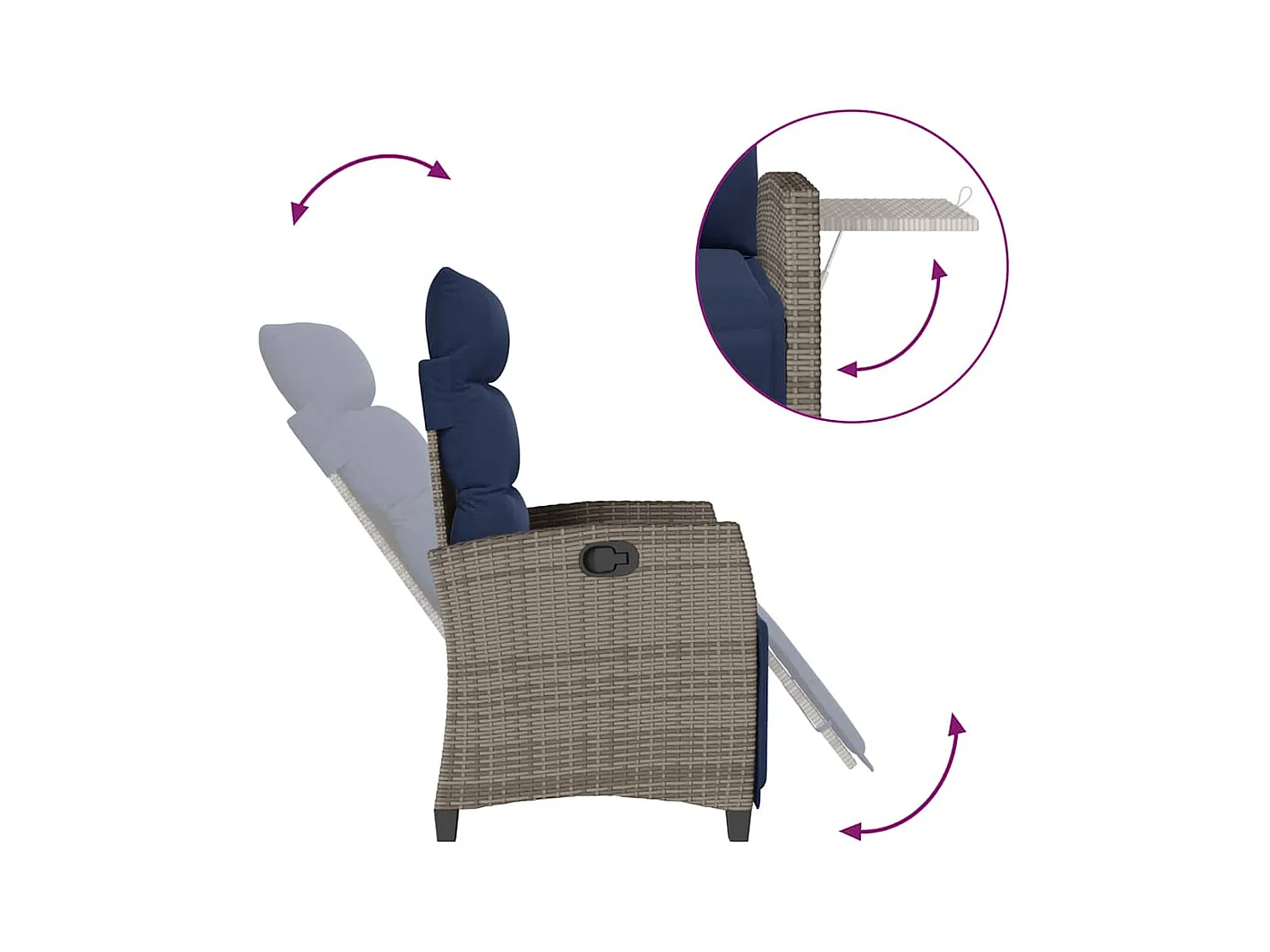 Chaise de jardin inclinable avec table d'appoint gris polyrotin