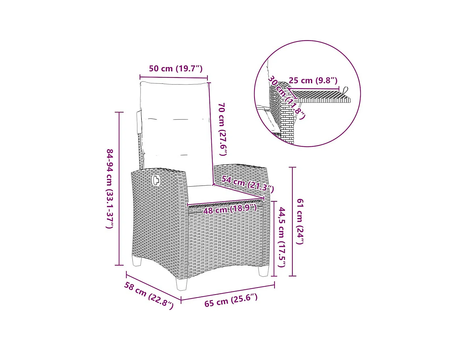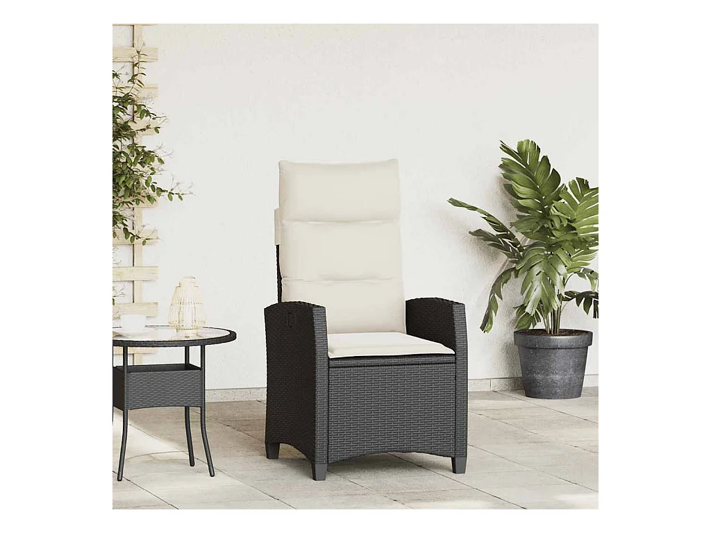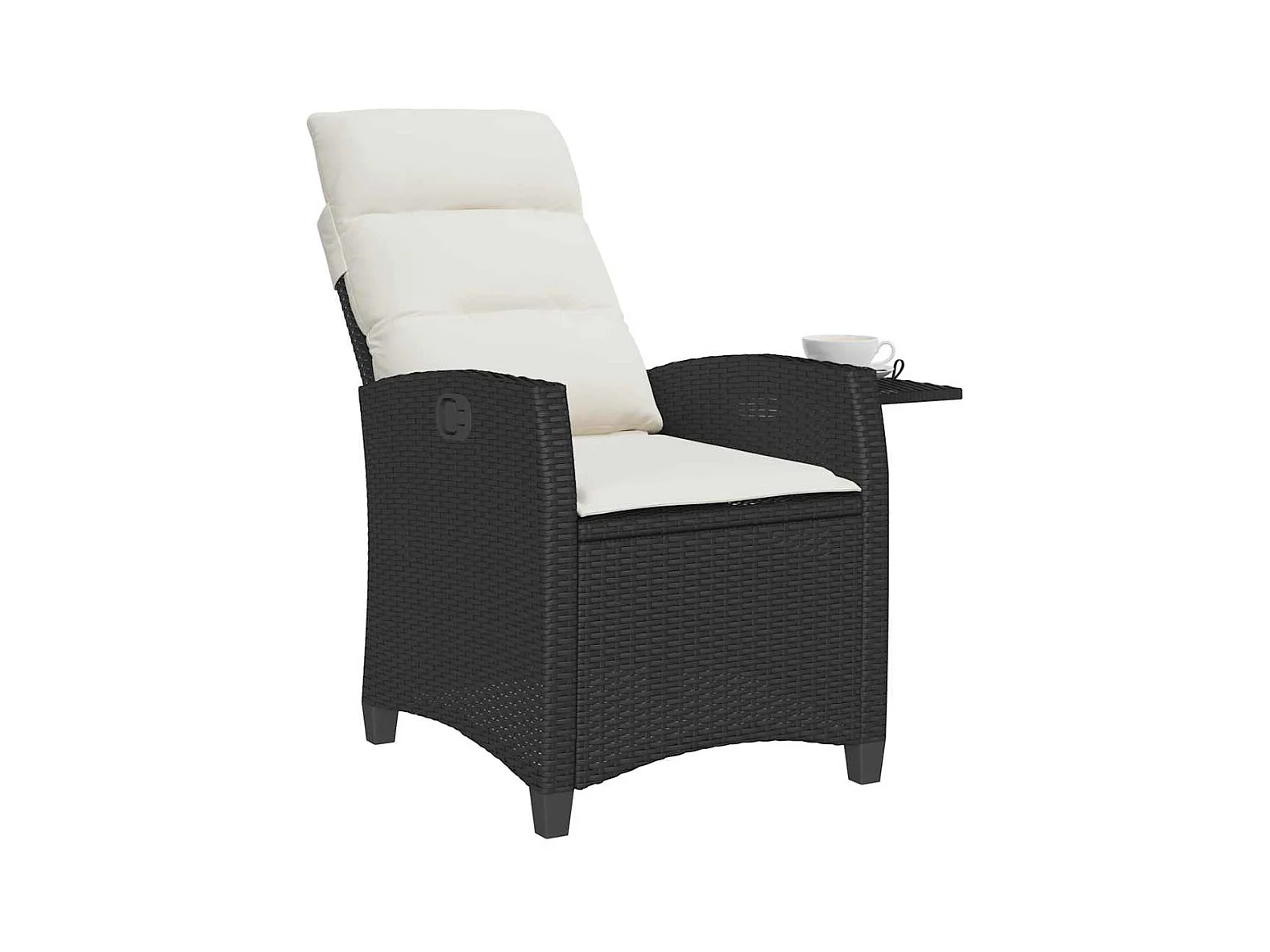 Chaise de jardin inclinable avec table d'appoint noir polyrotin