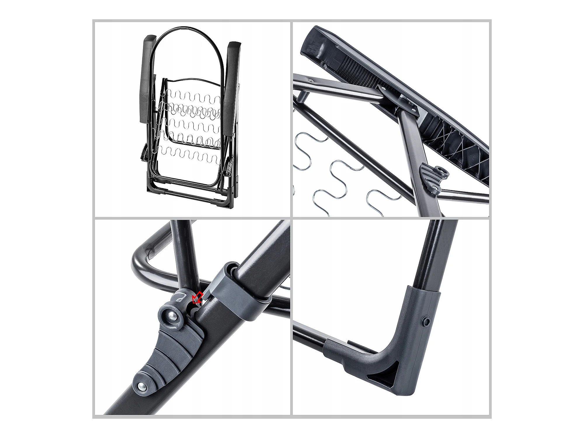 Chaise longue à bascule gris acier et textilène