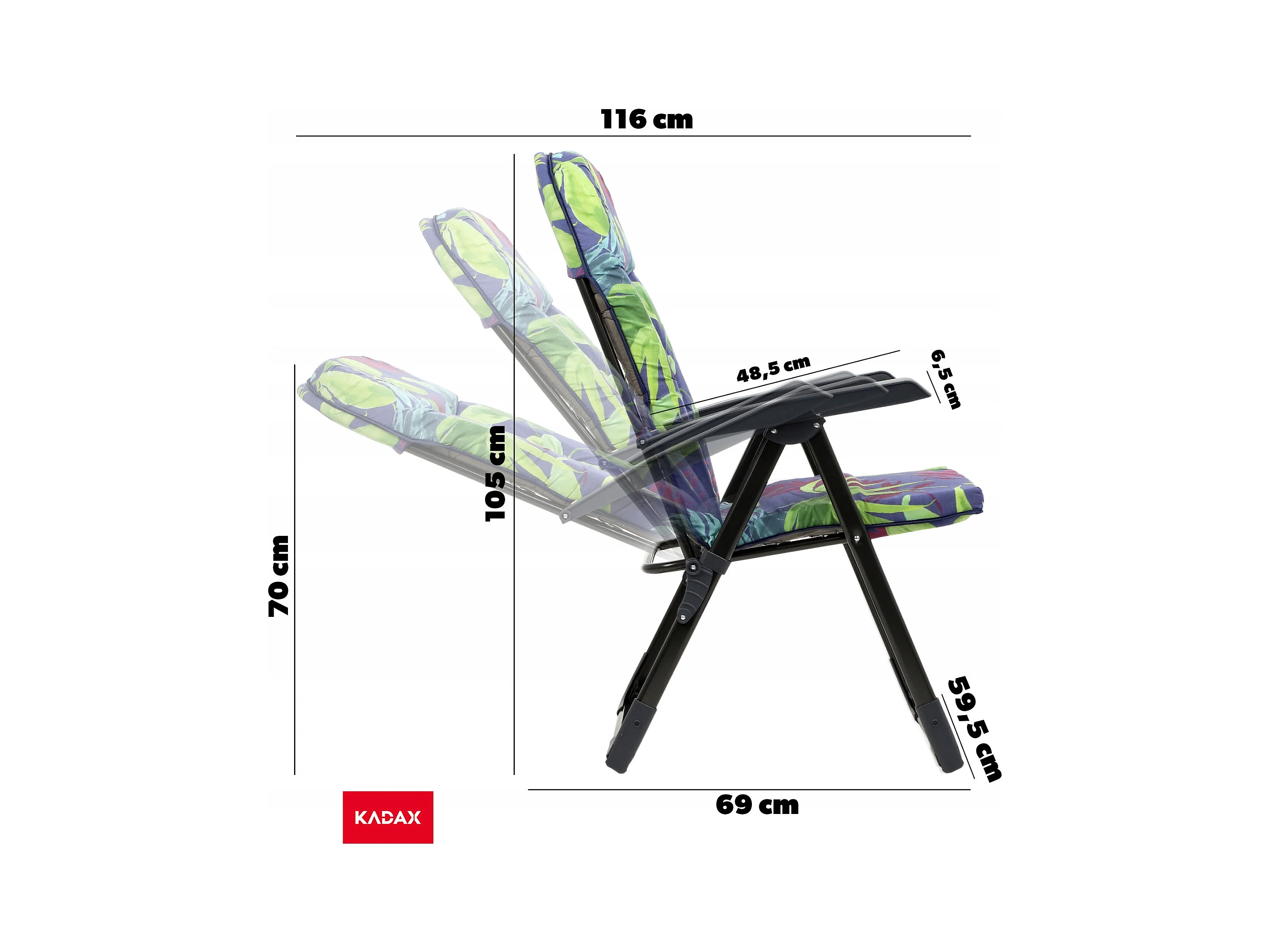Chaise de jardin KADAX avec dossier réglable, chaise relax en acier thermolaqué, chaise pliante avec capacité de charge jusqu'à 110 kg, chaise longue avec coussin