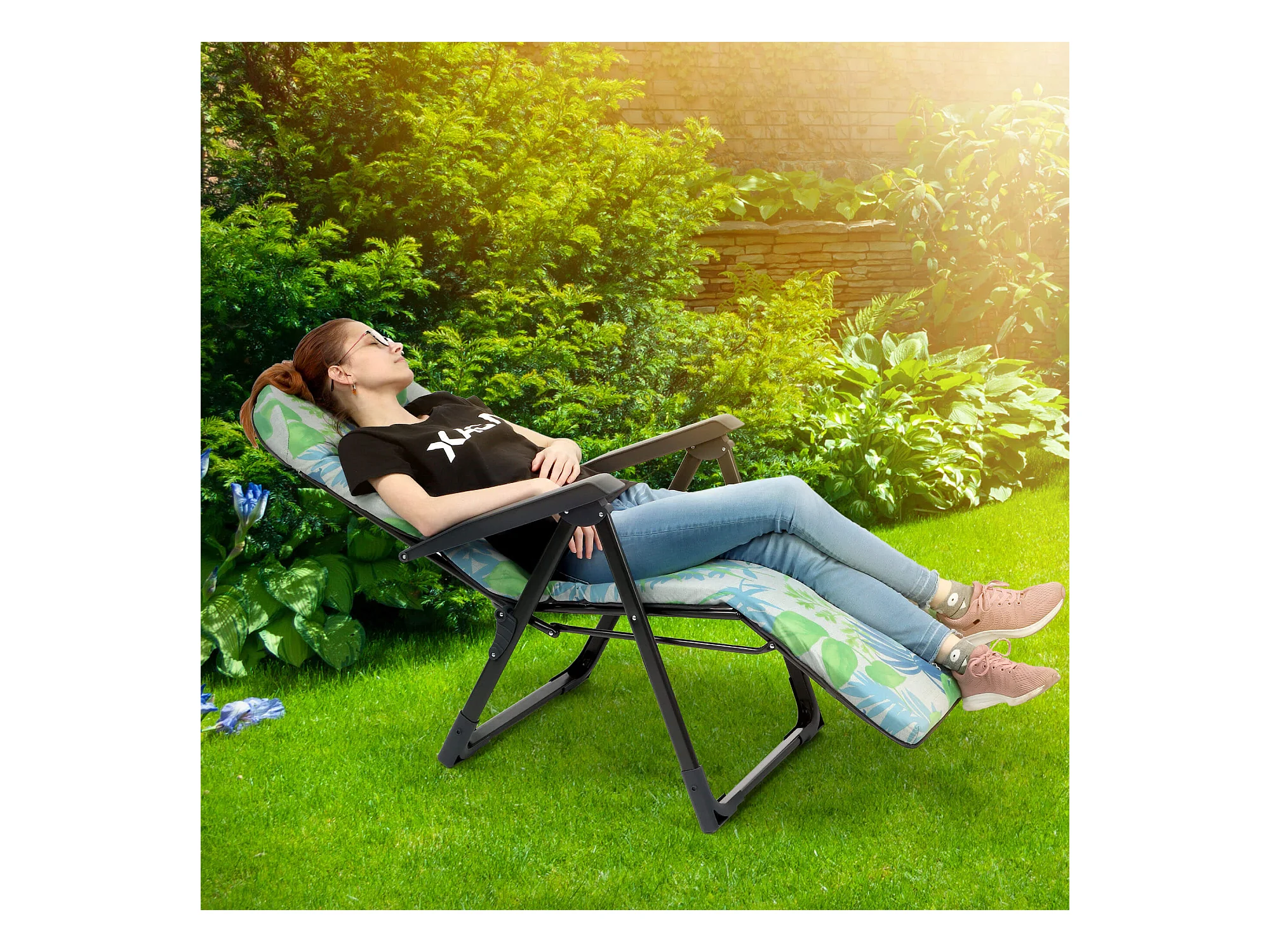 Chaise de jardin KADAX avec dossier réglable, chaise relax en acier thermolaqué, pliable, chaise pliante avec capacité de charge jusqu'à 110 kg, chaise longue avec