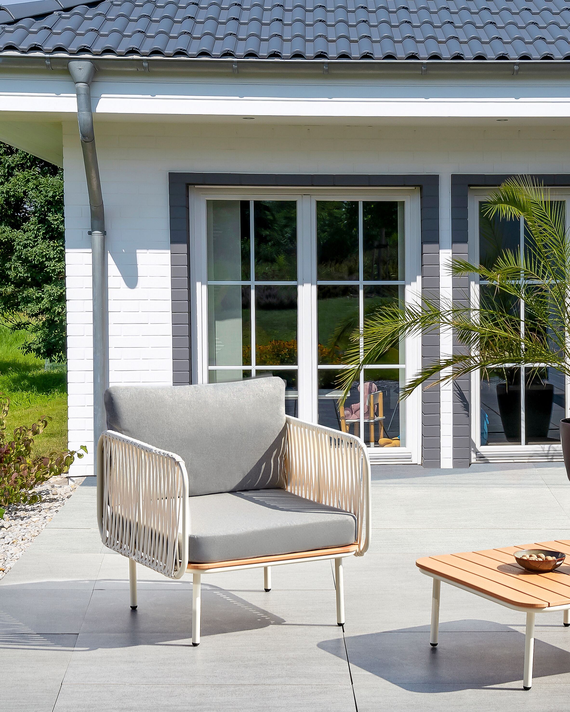 Banc de jardin en métal façon fer forgé - Blanc - GUERMANTES de MYLIA