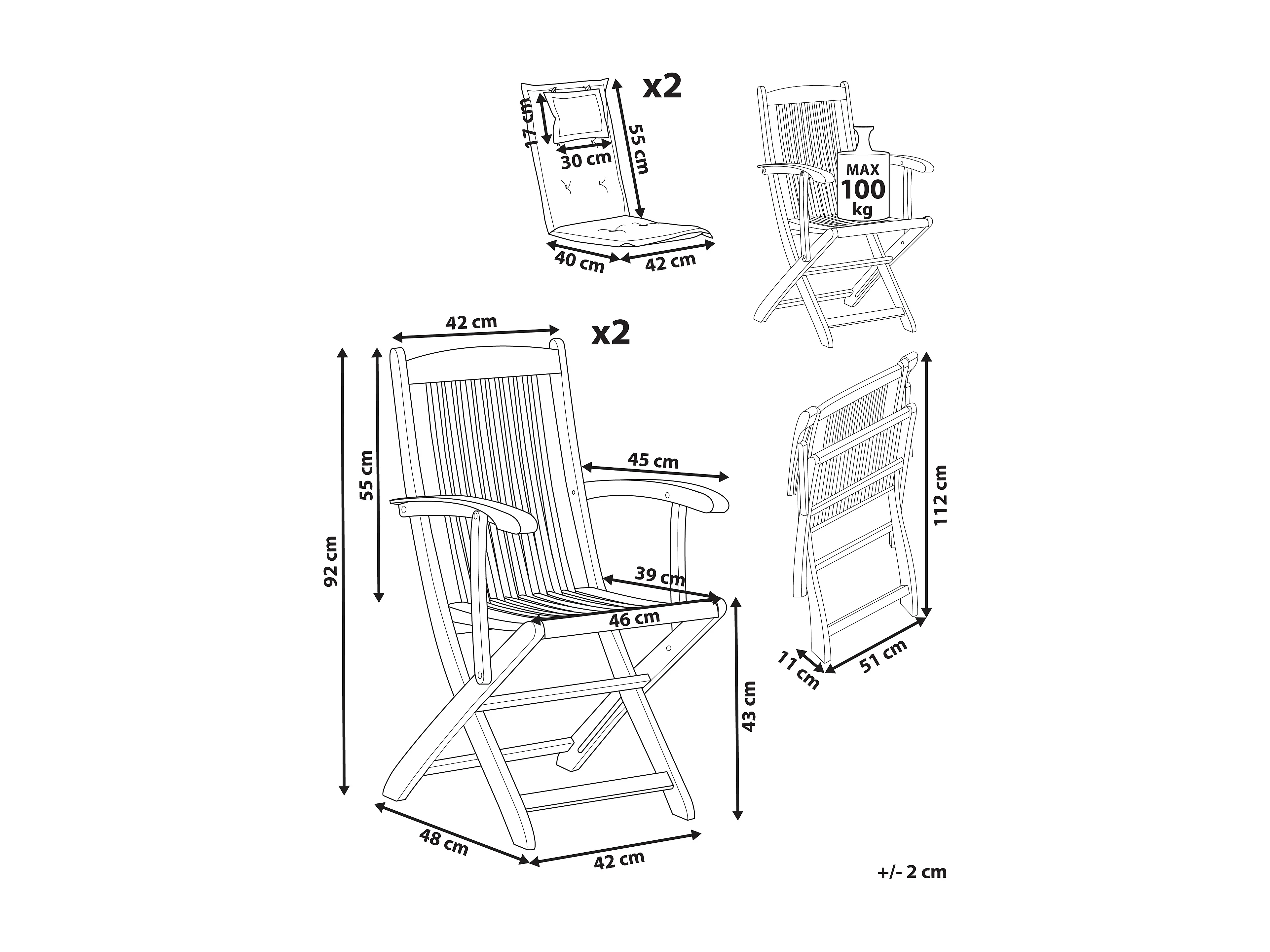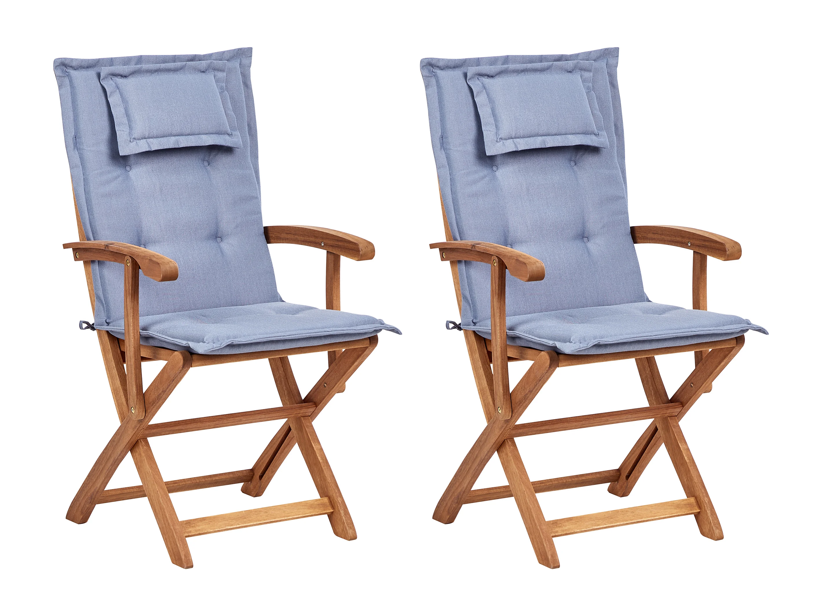 Lot de 2 chaises de jardin avec coussins MAUI II Acacia Bleu