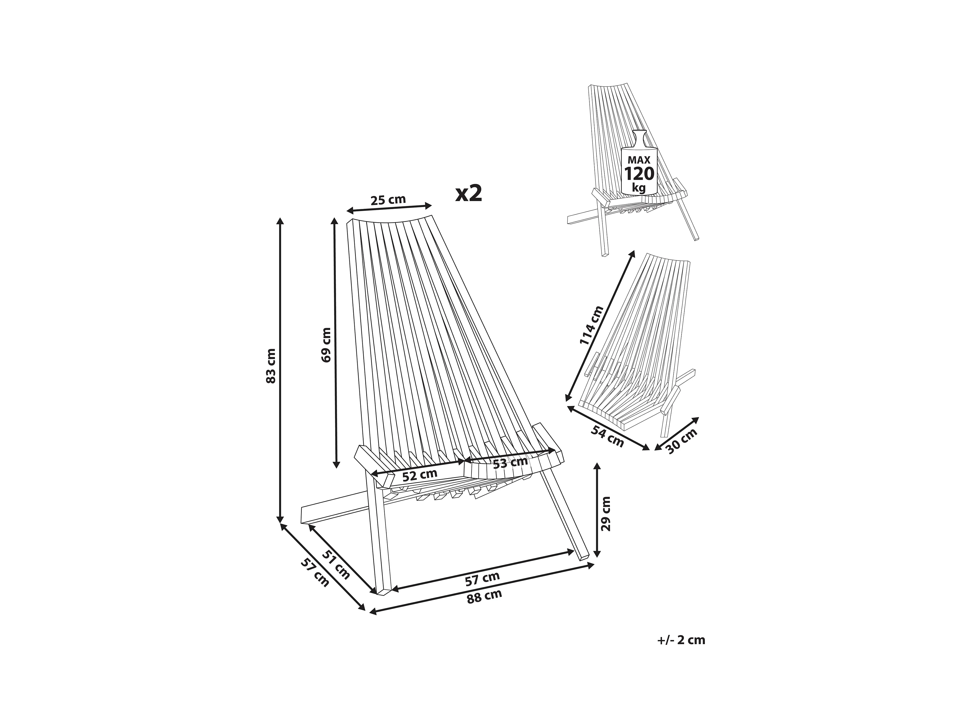 Lot de 2 chaises pliantes en bois d'eucalyptus