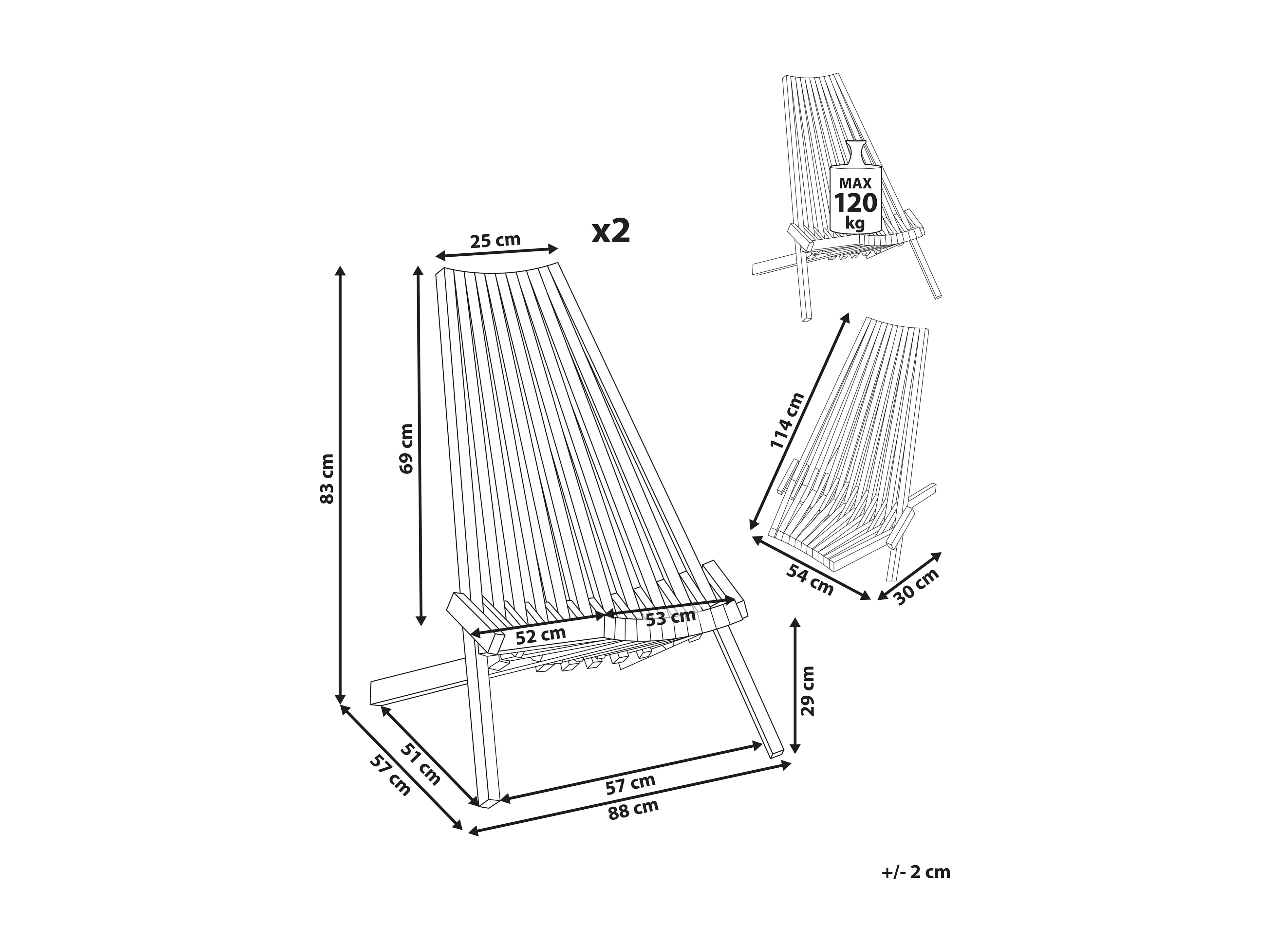 Lot de 2 chaises de jardin BELLANO Acacia Marron
