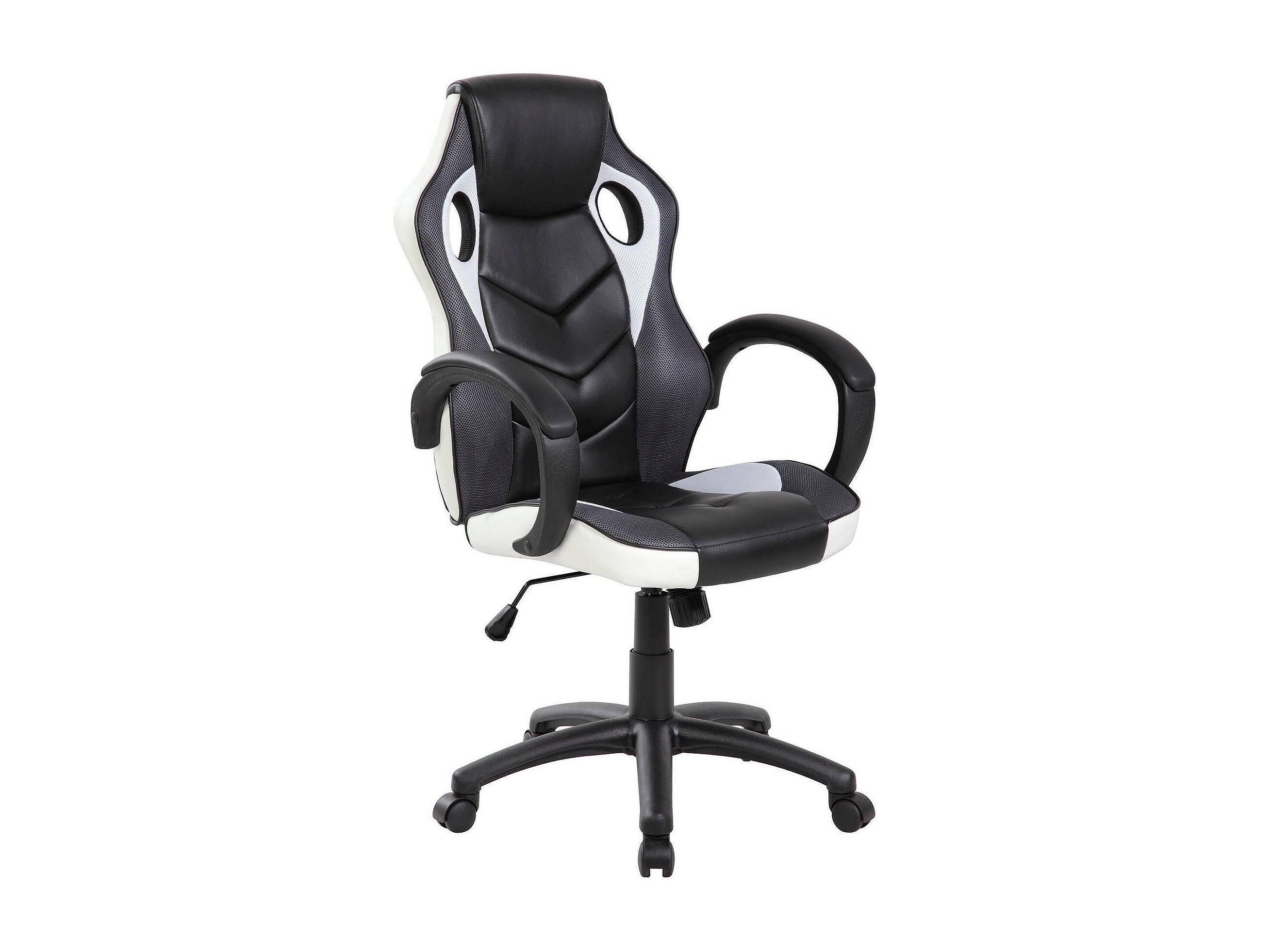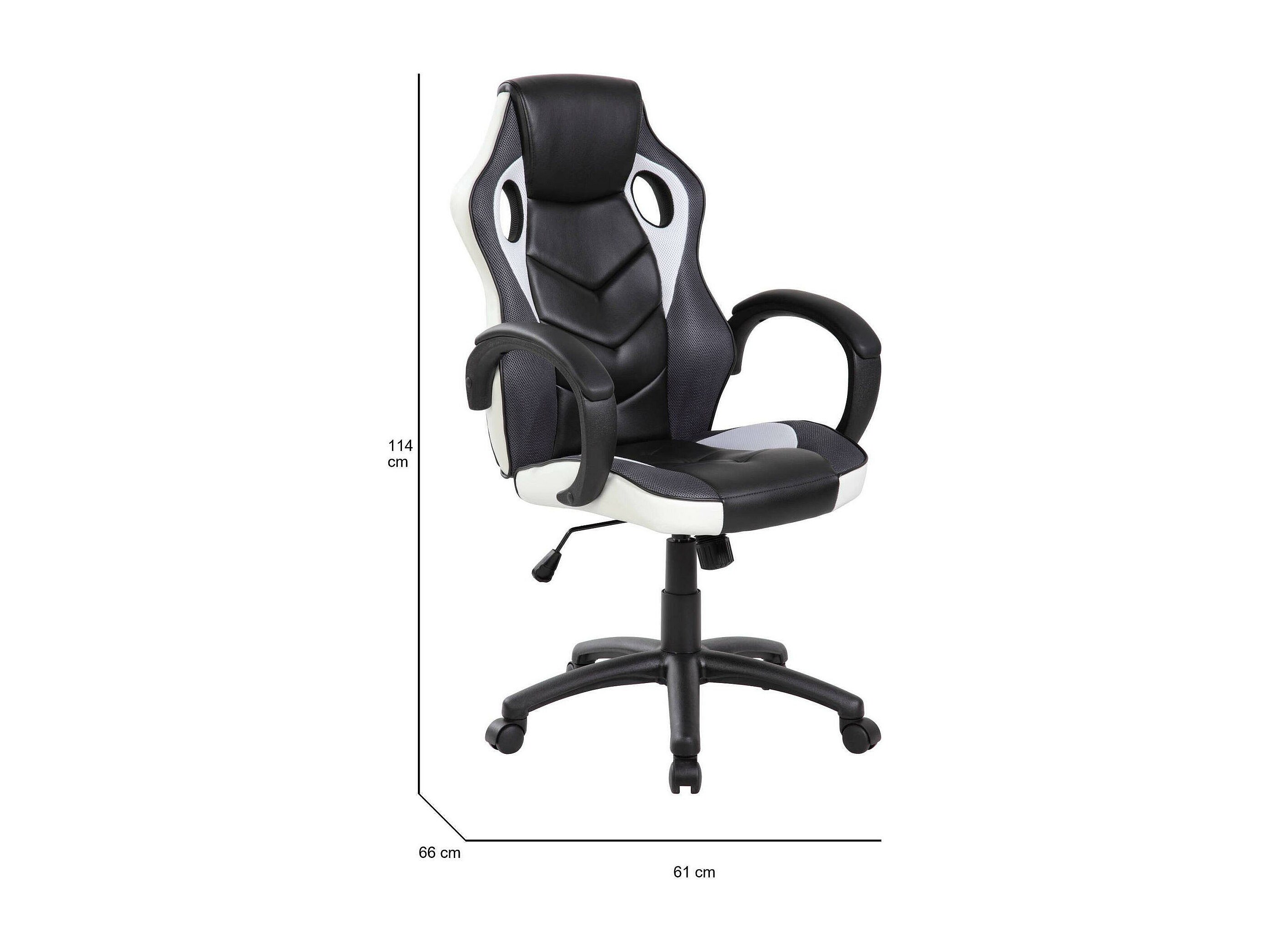 Chaise de jeu Darlanc, Fauteuil de jeu pour adultes, Chaise de bureau, 66x61h104/114 cm, Noir et Blanc