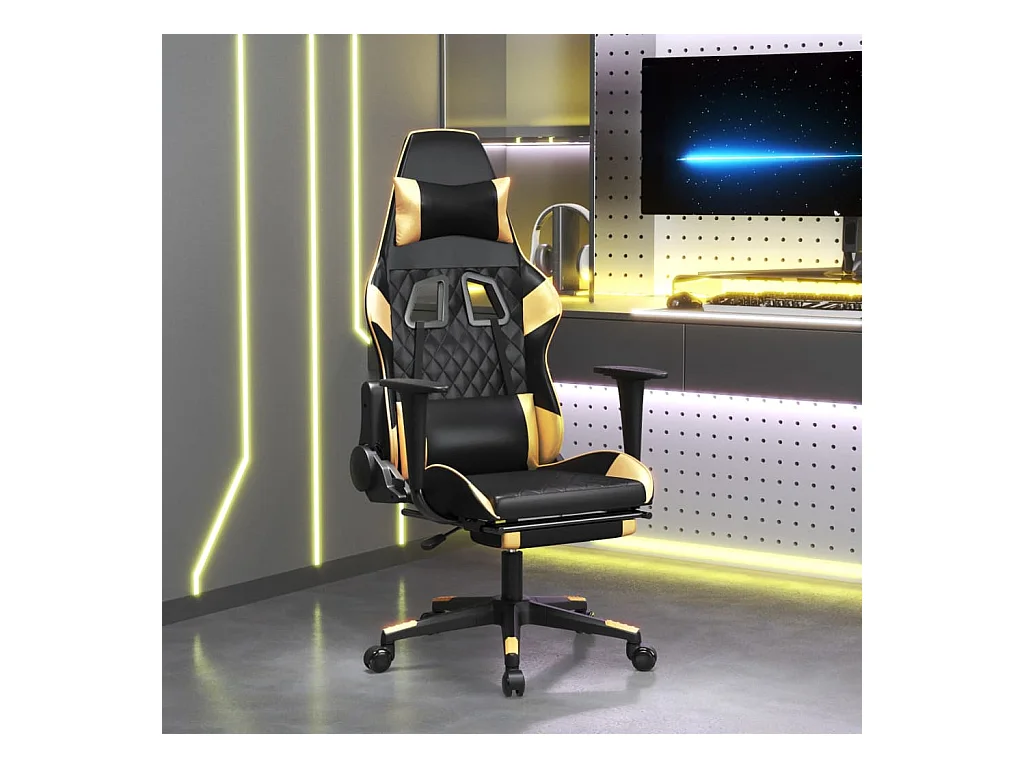 Chaise de jeu de massage avec repose-pied Noir&Doré Similicuir