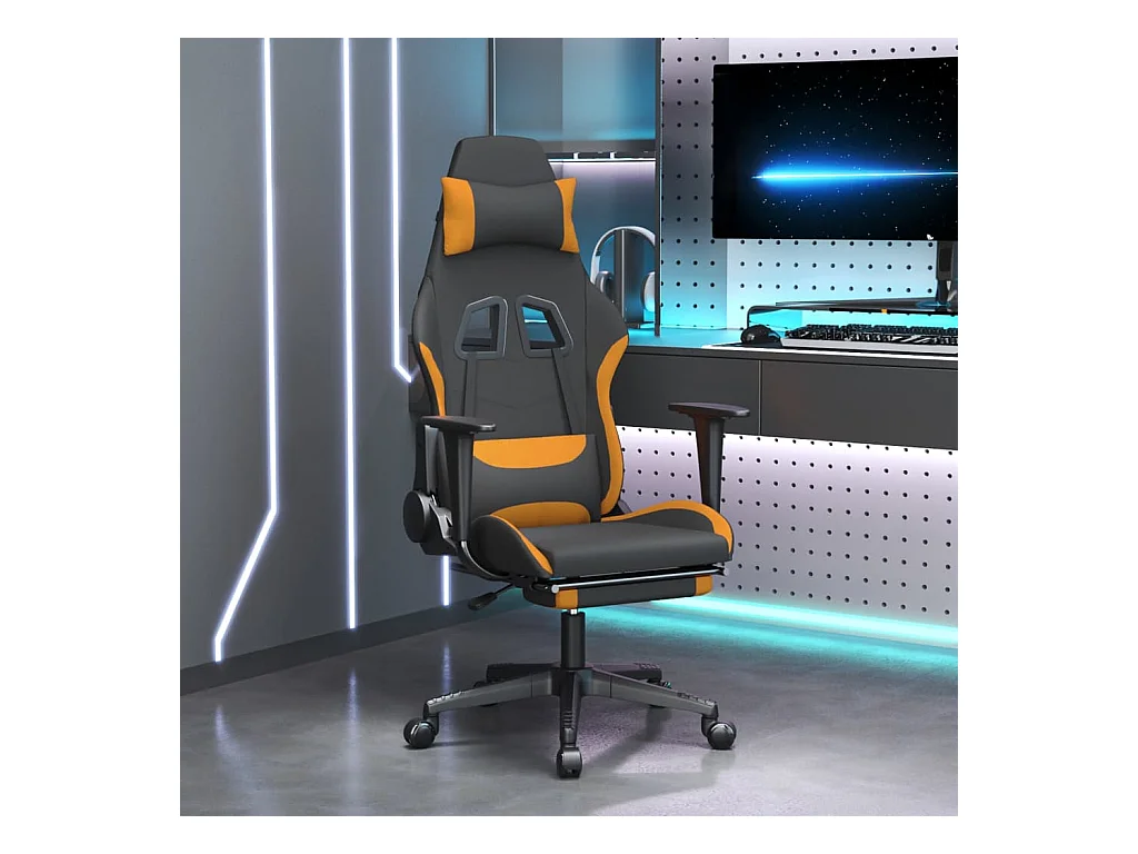 Chaise de jeu de massage avec repose-pied Noir et orange Tissu