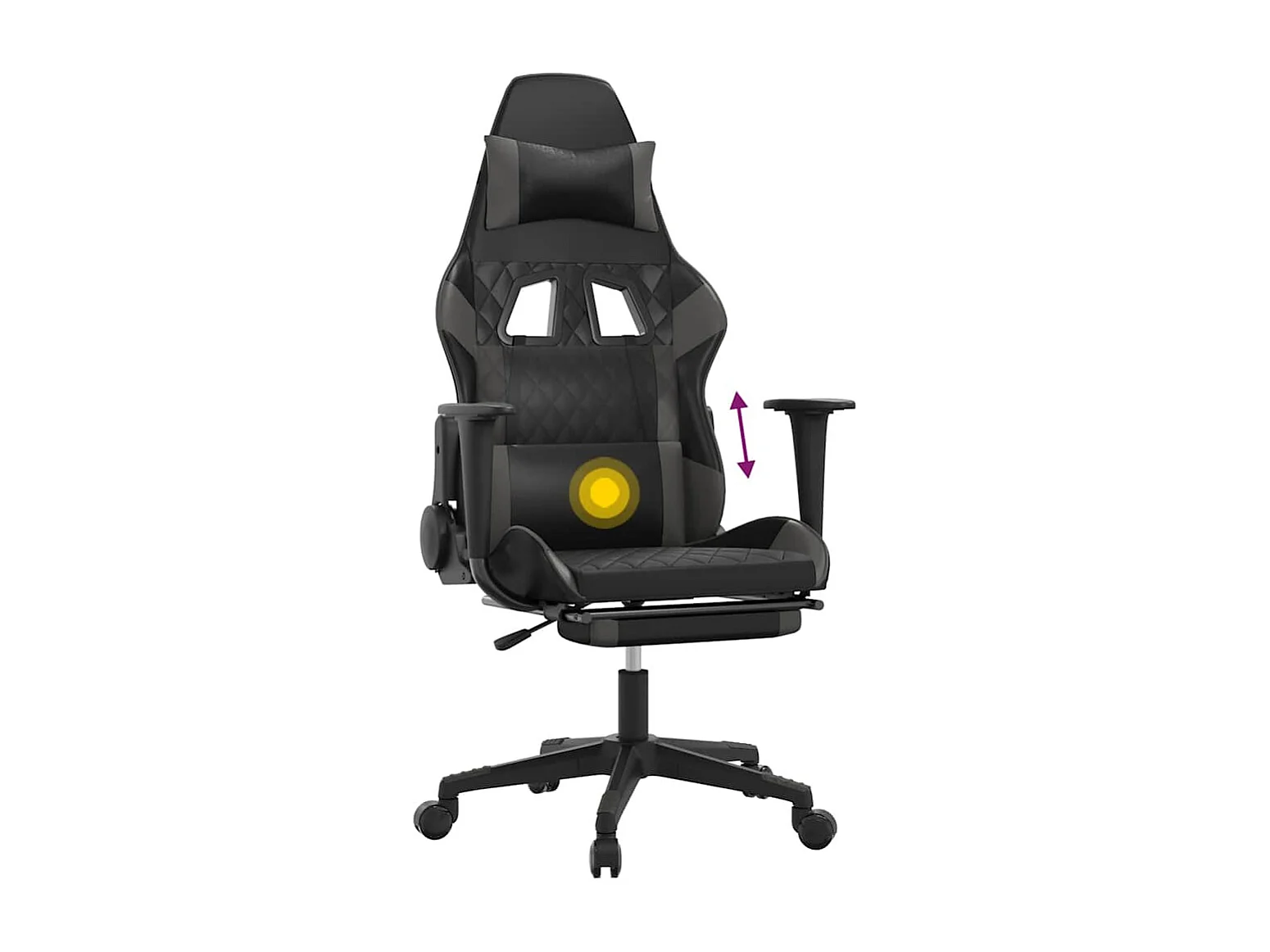 Chaise de jeu de massage avec repose-pied Noir&Gris Similicuir