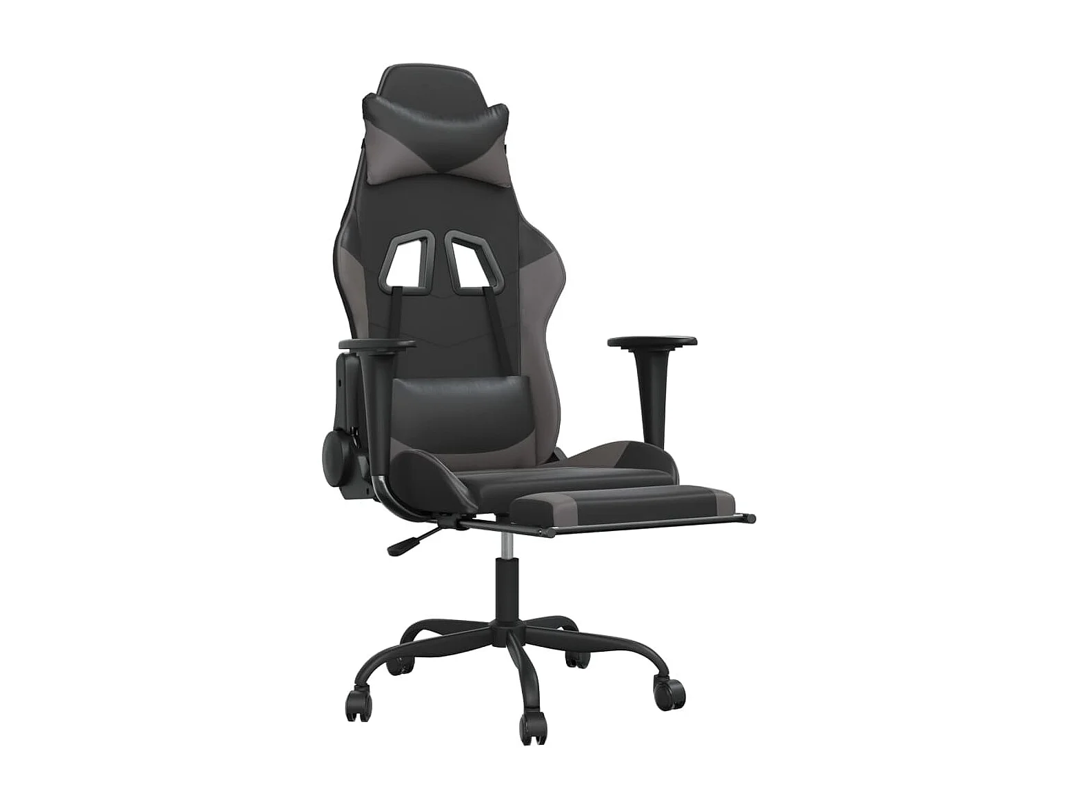 Chaise de jeu de massage avec repose-pied Noir&Gris Similicuir