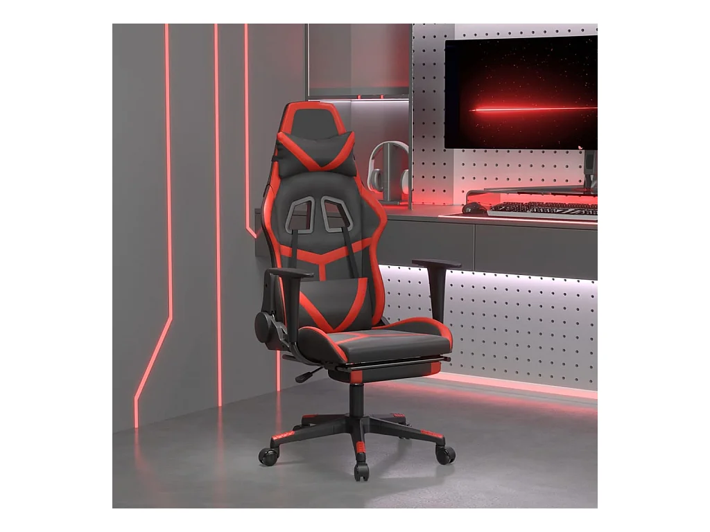 Chaise de jeu de massage avec repose-pied Noir&Rouge Similicuir