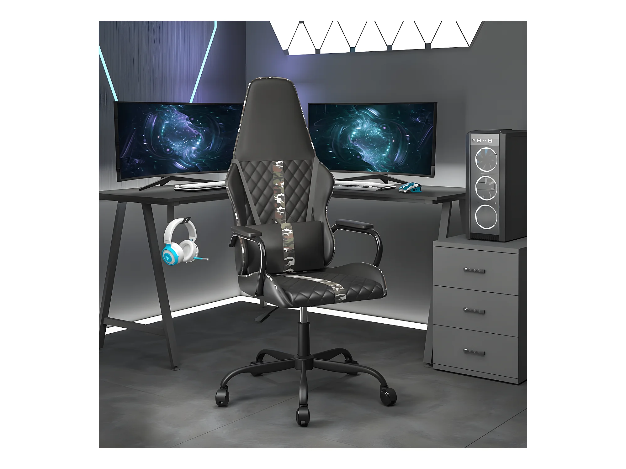 Fauteuil de jeux vidéo avec LED RVB Blanc et noir Similicuir