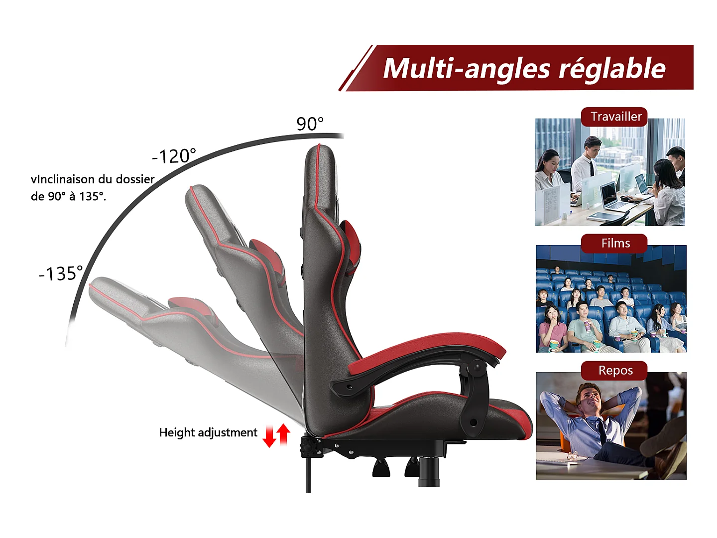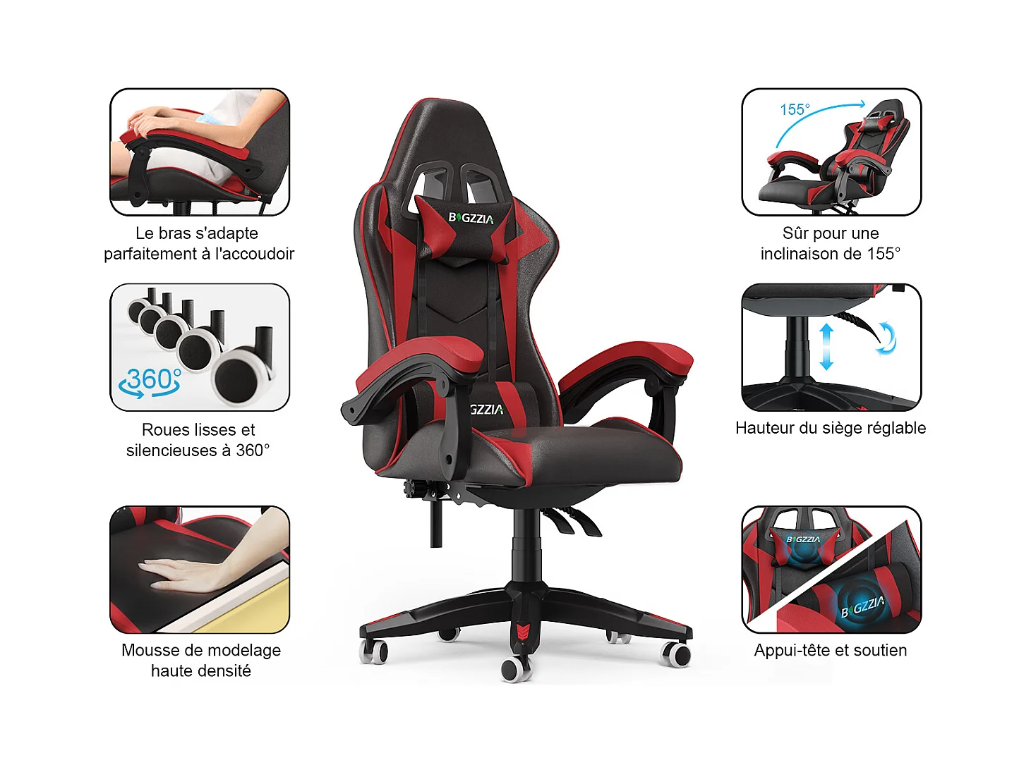 Chaise de jeu ergonomique avec appui-tête et support lombaire