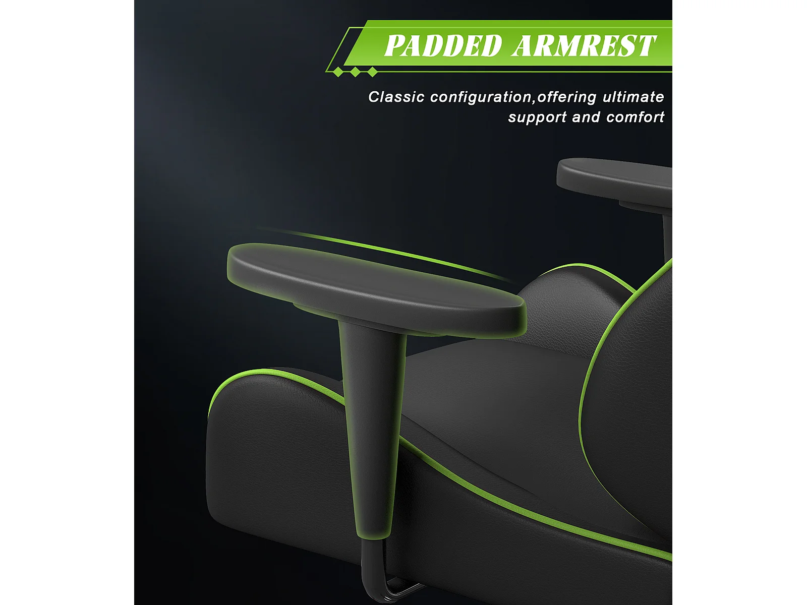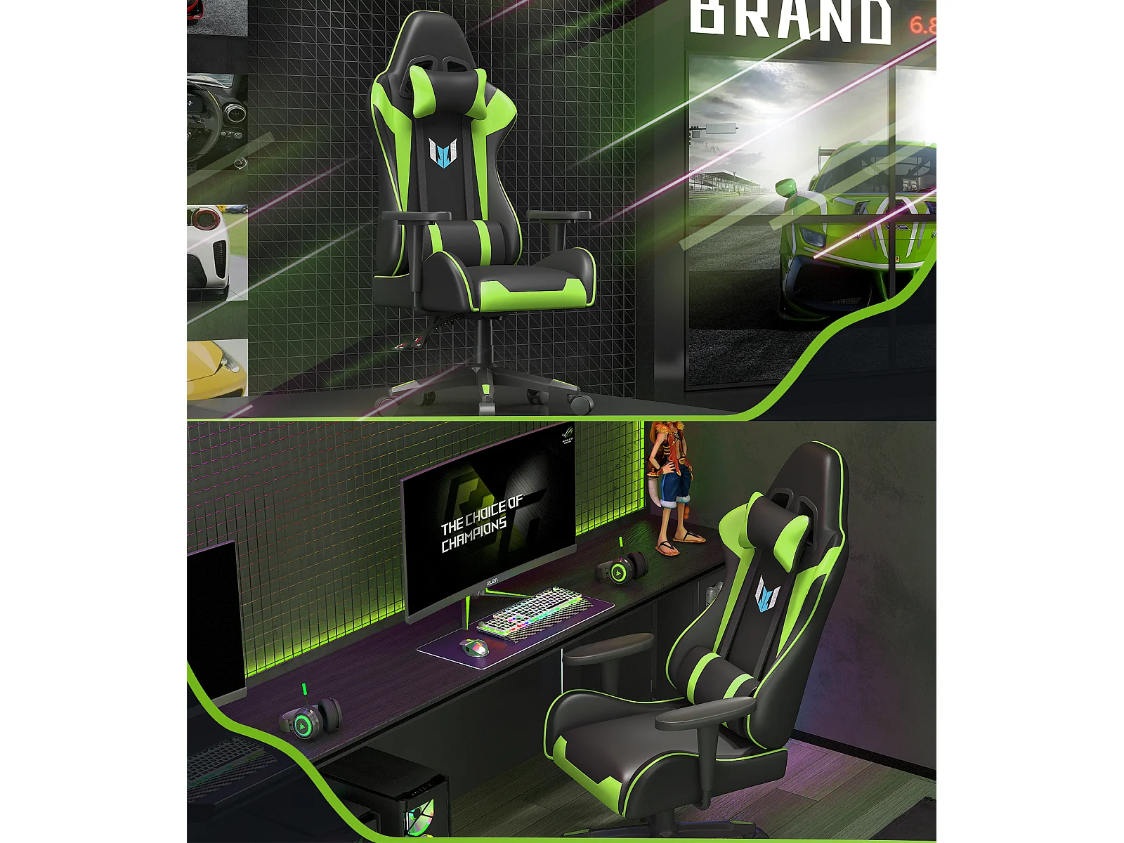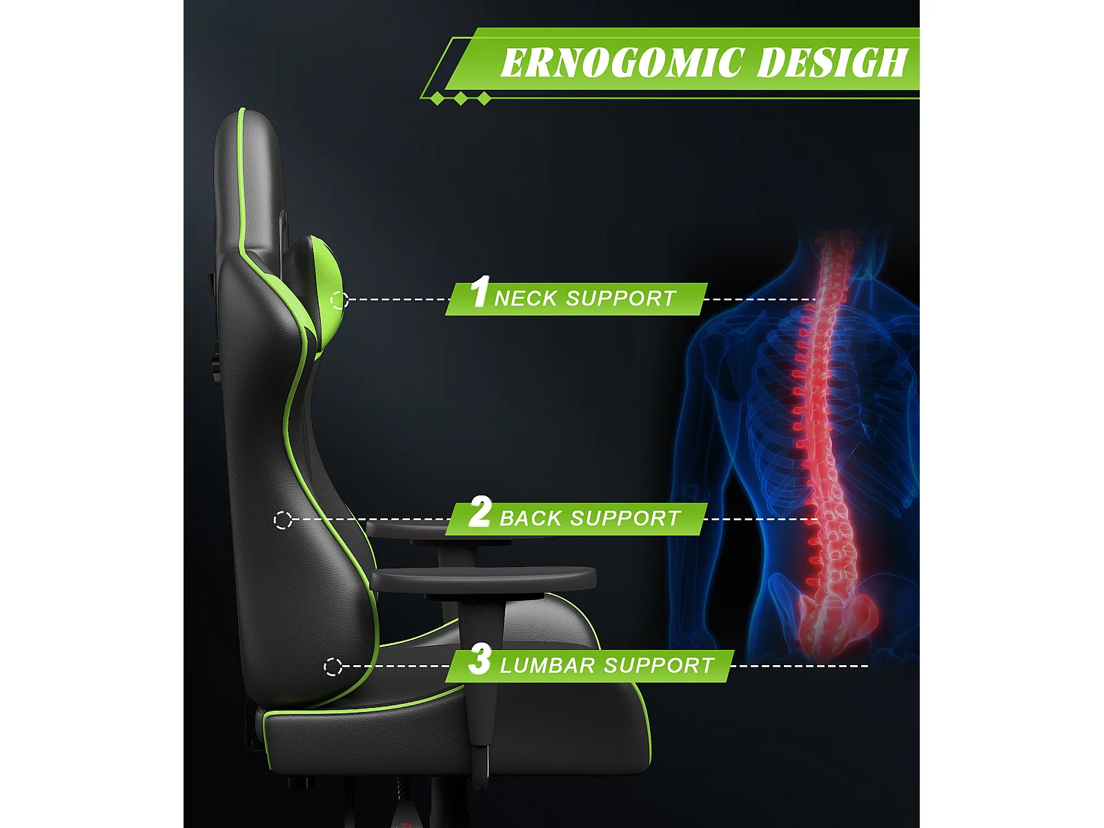 Chaise de jeu jeu avec coussin lombaire et appui et accoudoir fixe, chaise de bureau en cuir PU