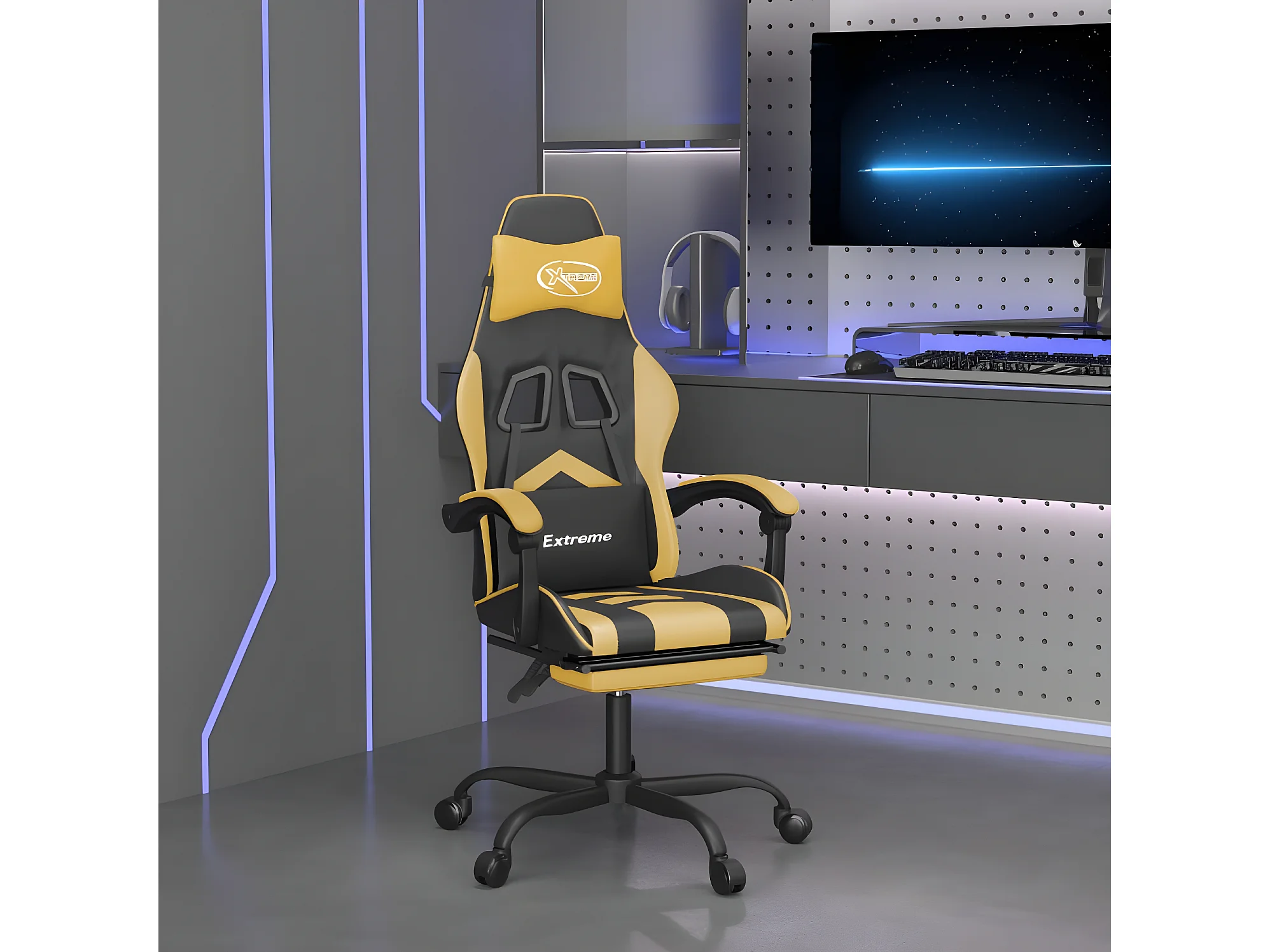 Chaise de jeu pivotante et repose-pied Noir et doré Similicuir