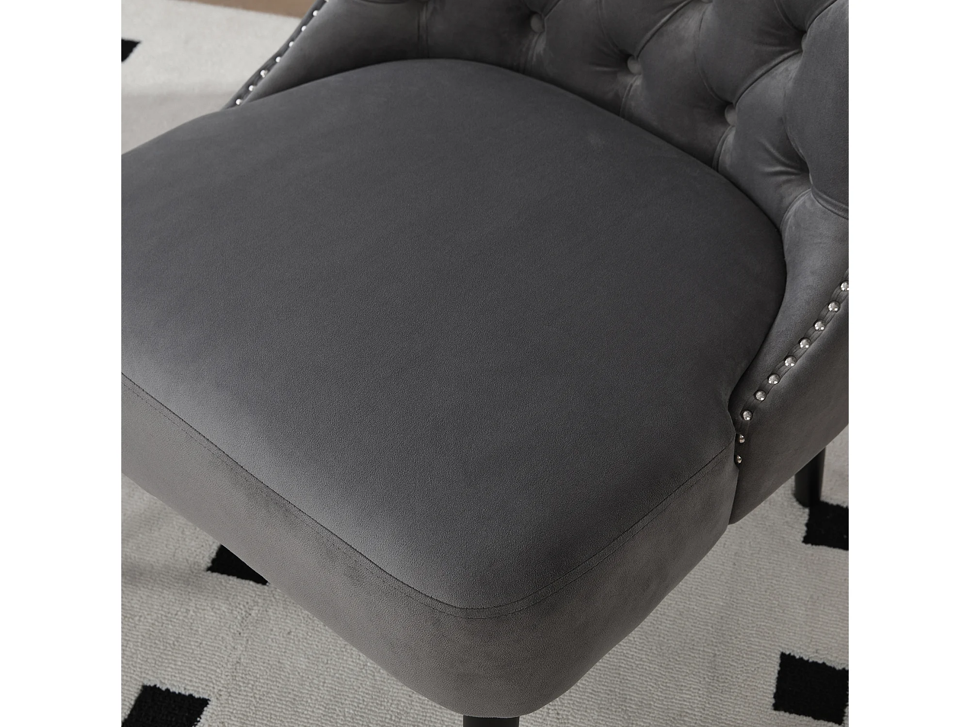 Lot de 2 chaises de salle à manger - Chaises avec dossier rembourré, pieds en bois et garniture cloutée - velours gris