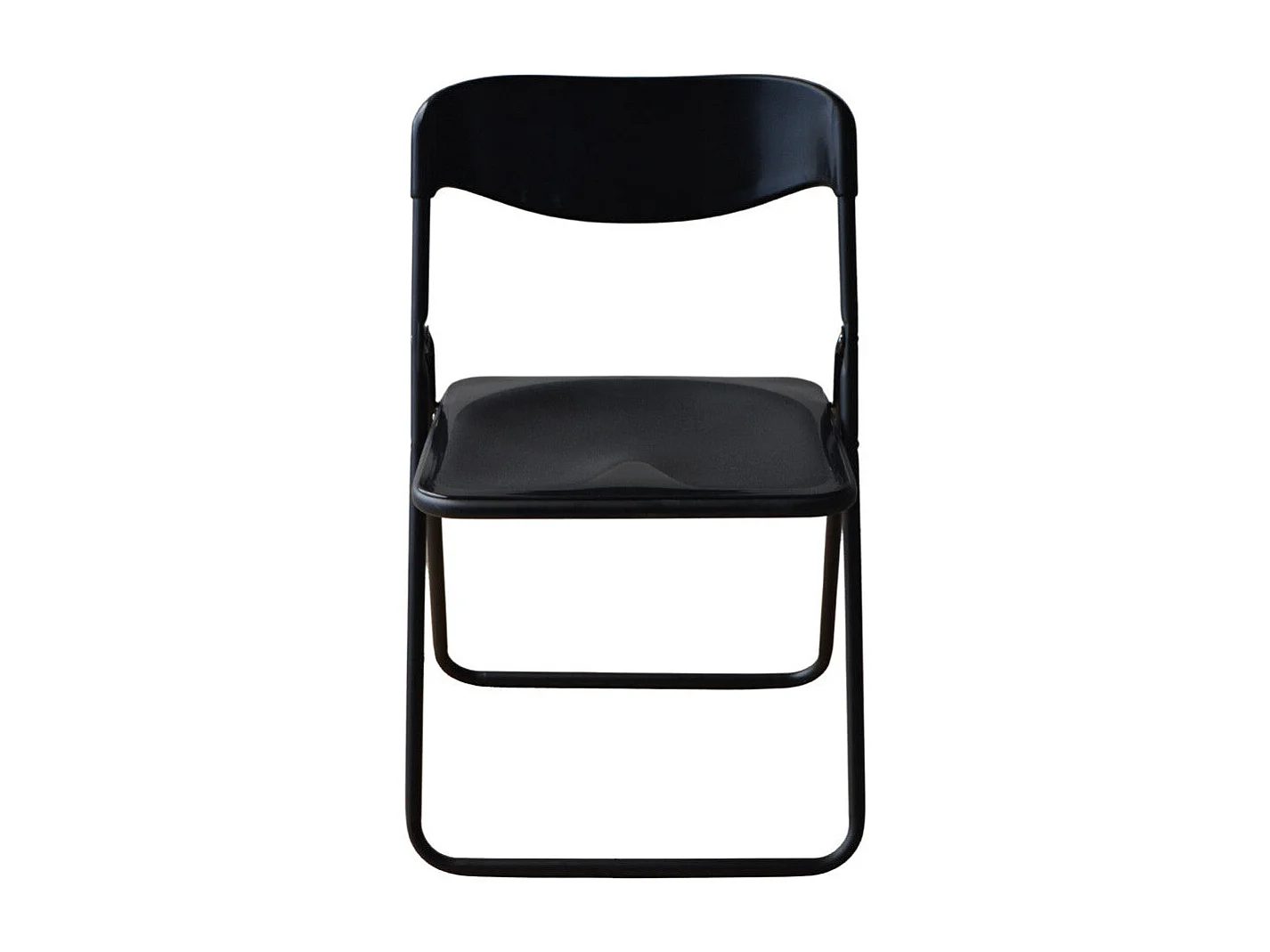 Chaise de poker pliante noire, H 45 cm, en fer et plastique, peu encombrante et pliable.