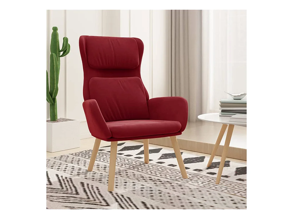 Fauteuil de relaxation Scandinave avec repose-pied Rouge bordeaux Velours SHL1467