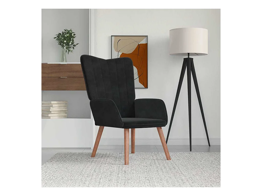 Fauteuil velours côtelé noir - avec Poches Latérales - Style Carré et Design Naturel pour Salon ou Balcon