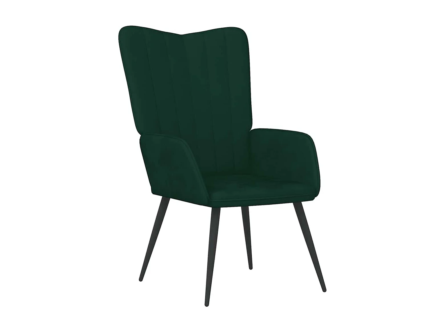 Fauteuil à oreilles avec tabouret vert foncé velours