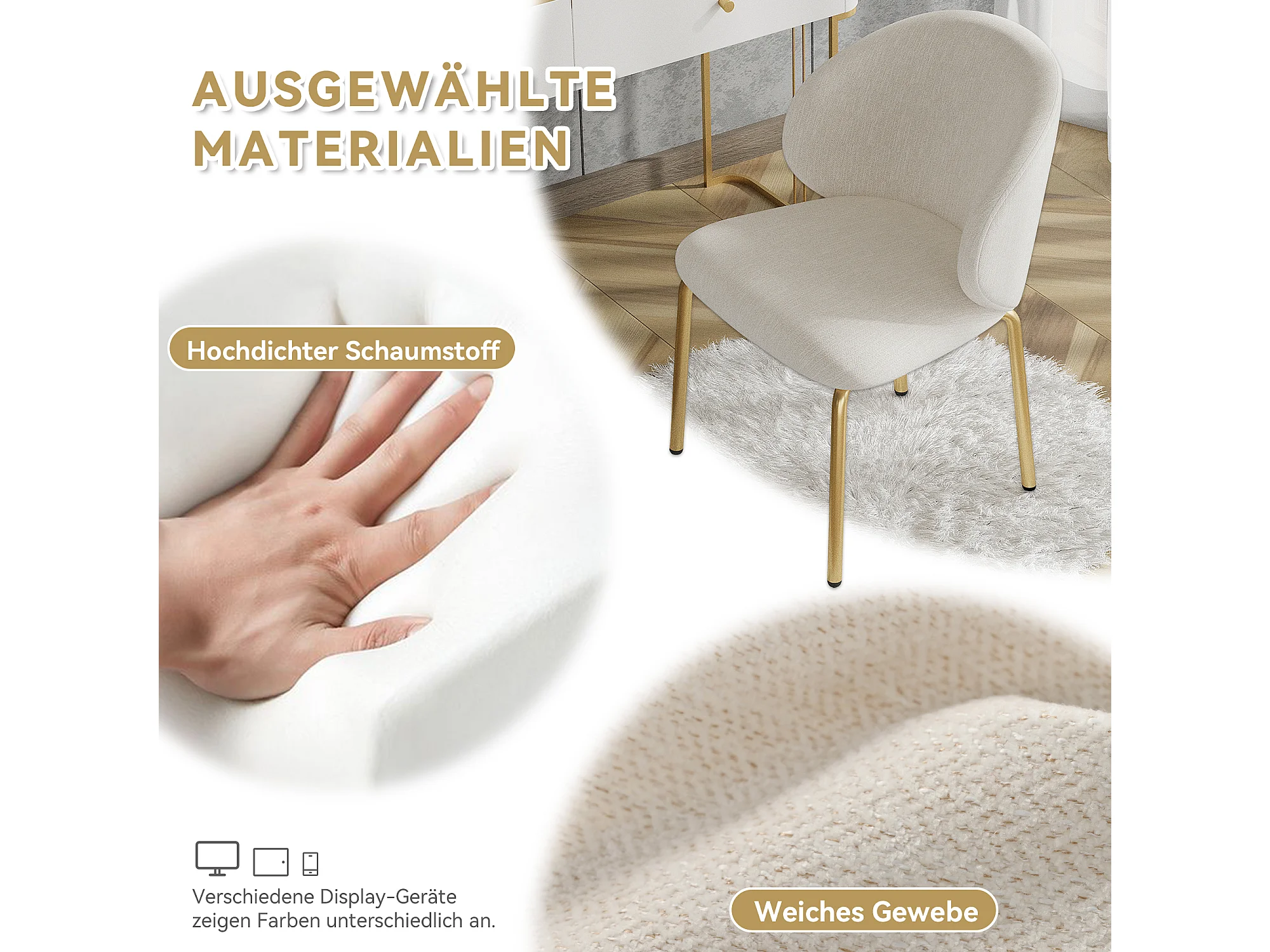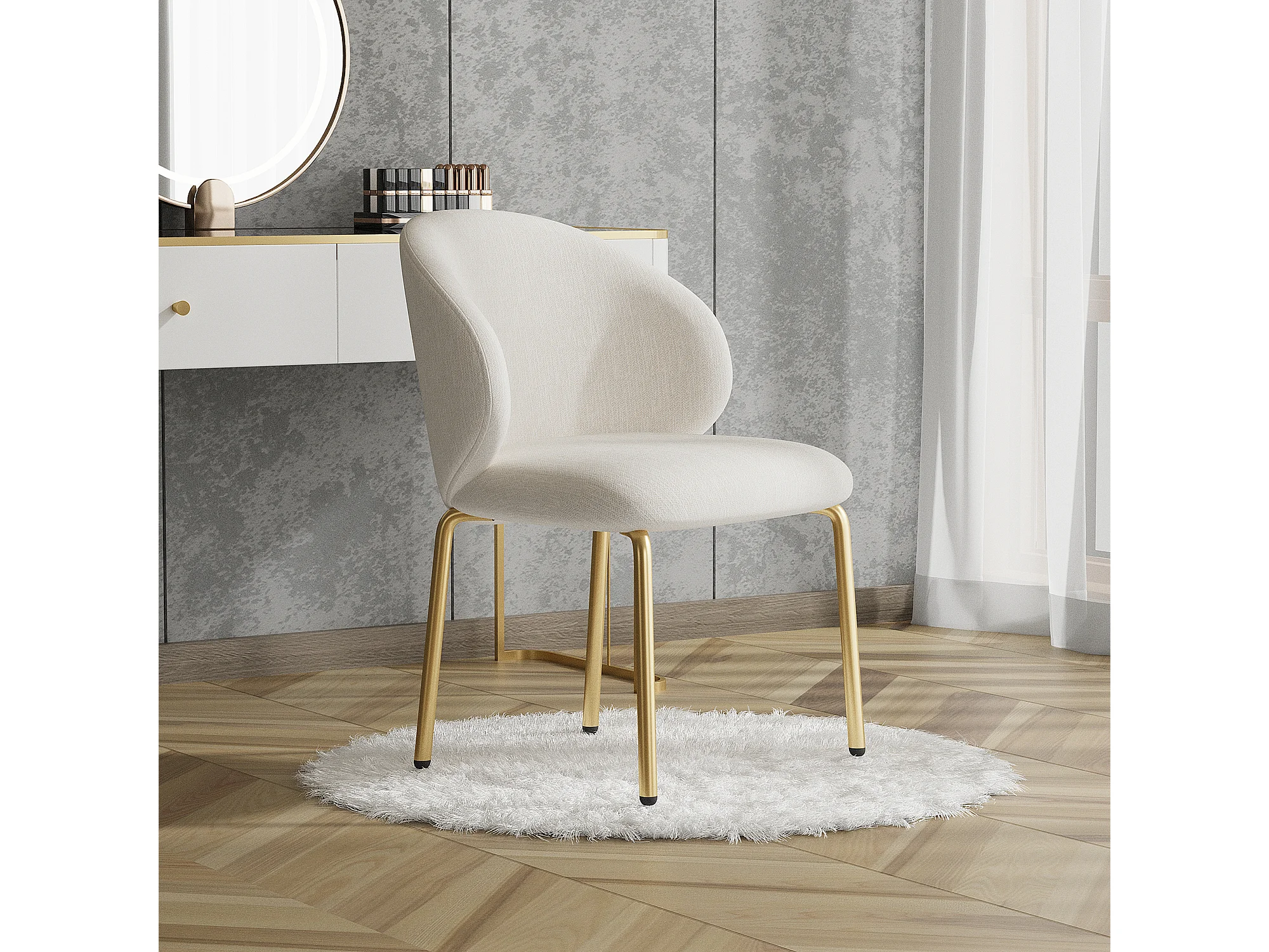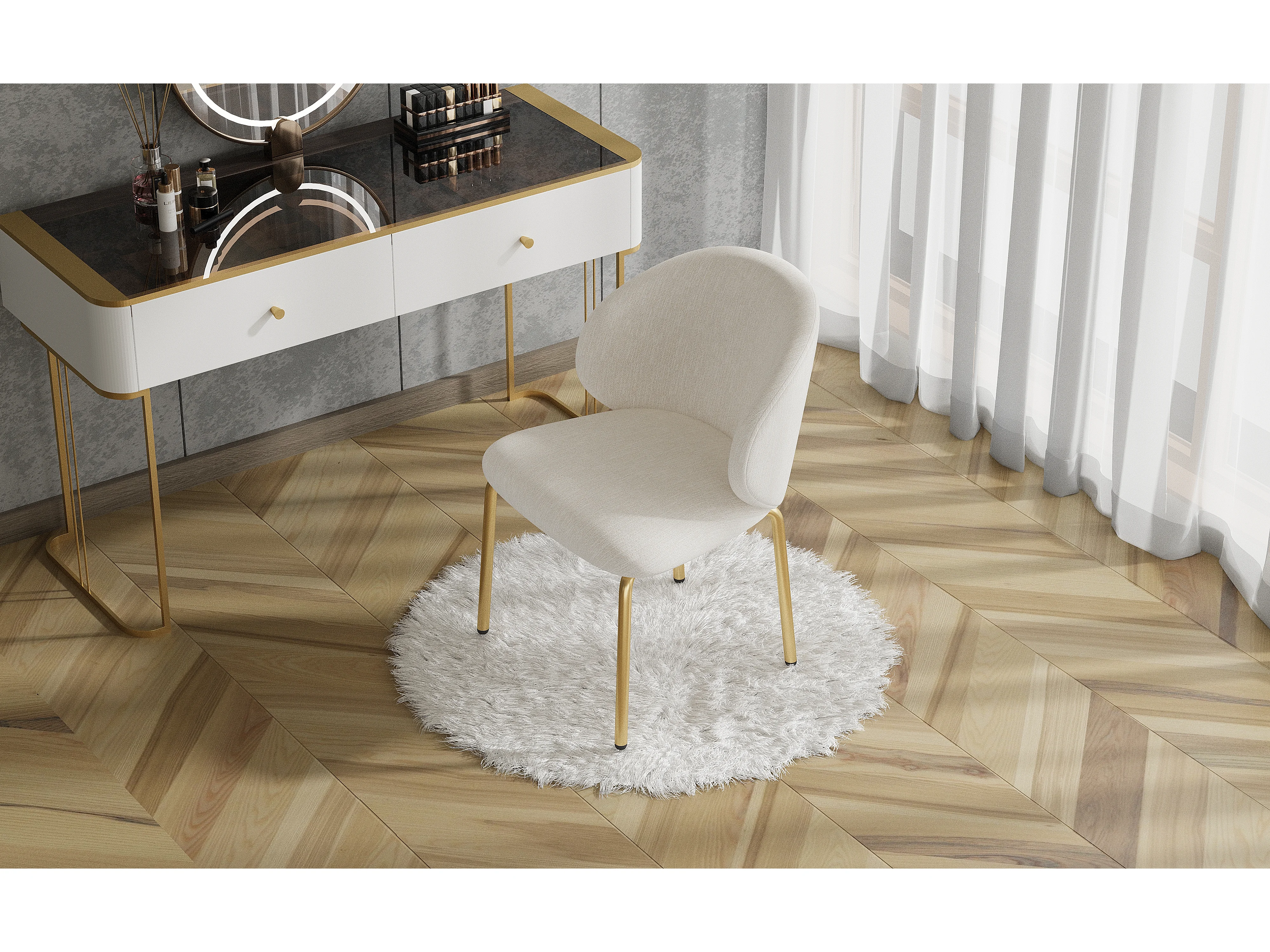 Chaise de salle à manger - 47.5 x 56 x 74 cm - chaise de coiffeuse - pieds dorés - chenille - beige