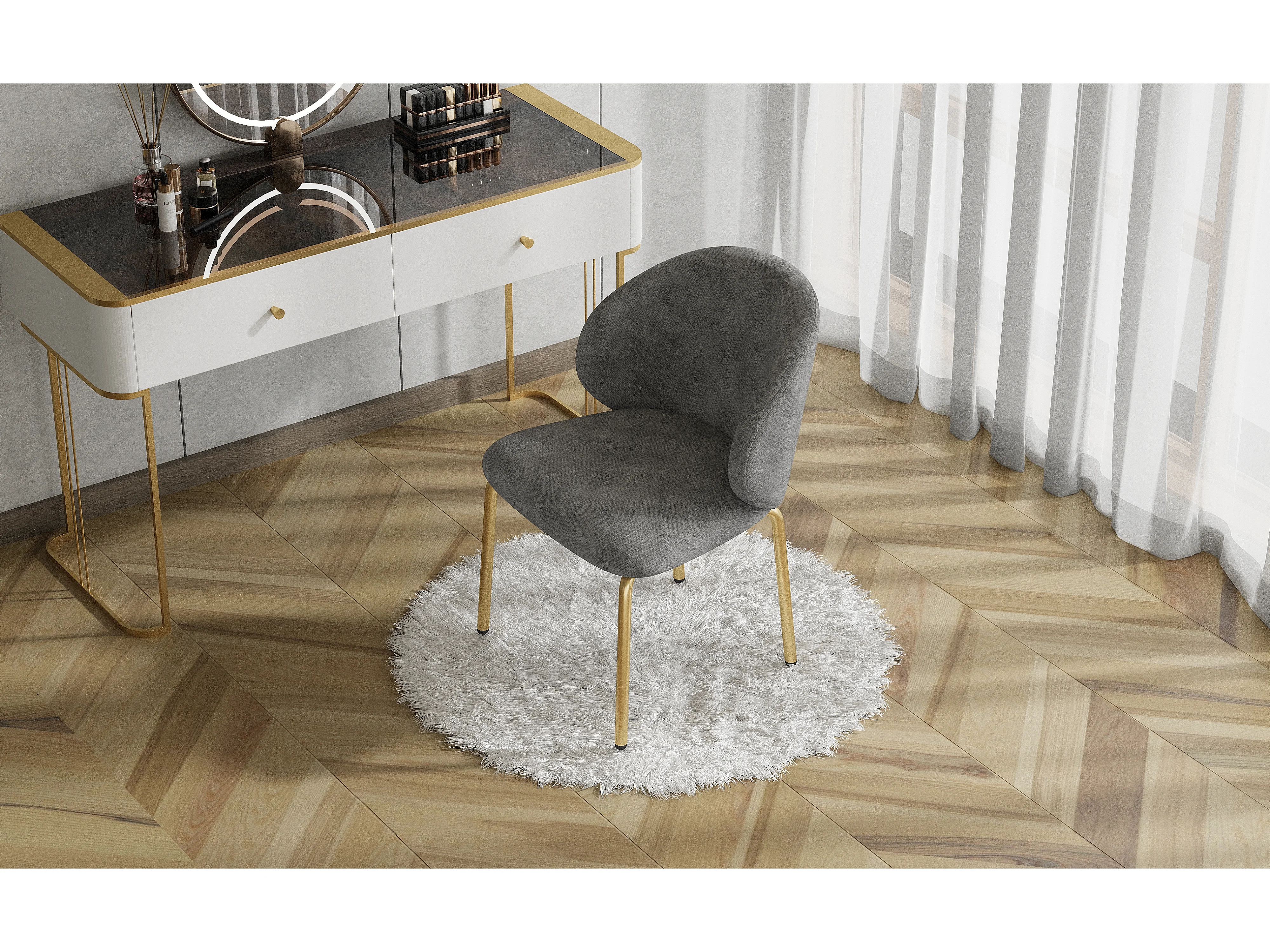 Chaise de salle à manger - 47.5 x 56 x 74 cm - chaise de coiffeuse - pieds dorés - chenille - gris