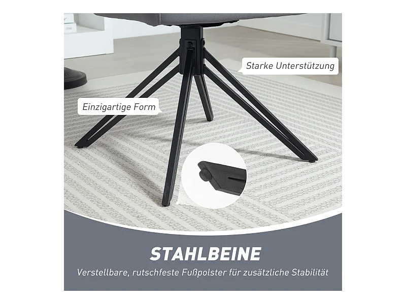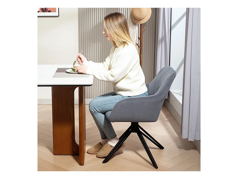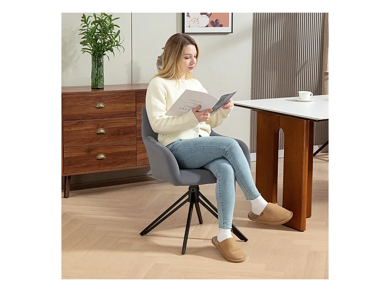 Chaise de bureau sans accoudoirs, pivotante et rembourrée, revêtement en tissu doux, réglable en hauteur, pieds en acier, couleur gris, confortable et pratique