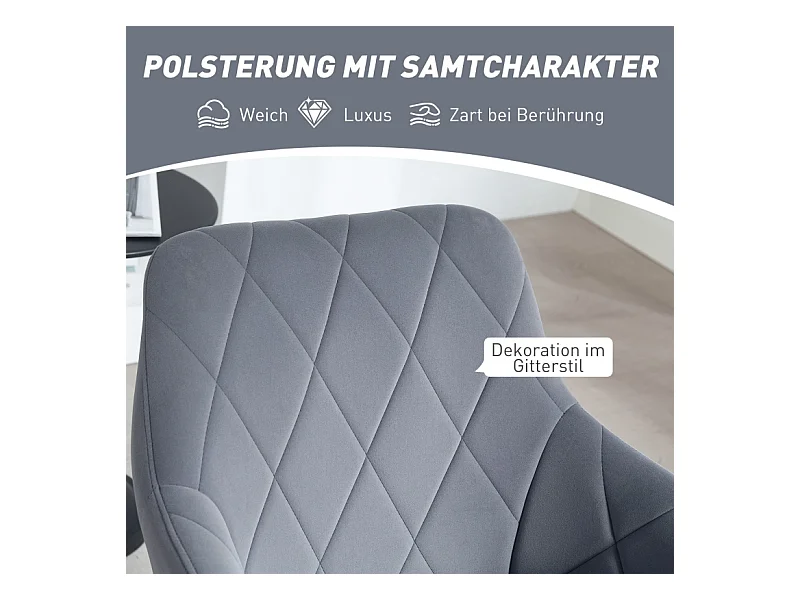 Chaise de bureau ergonomique pour home office, pivotante et réglable en hauteur avec fonction bascule, revêtement velours Teddy, gris