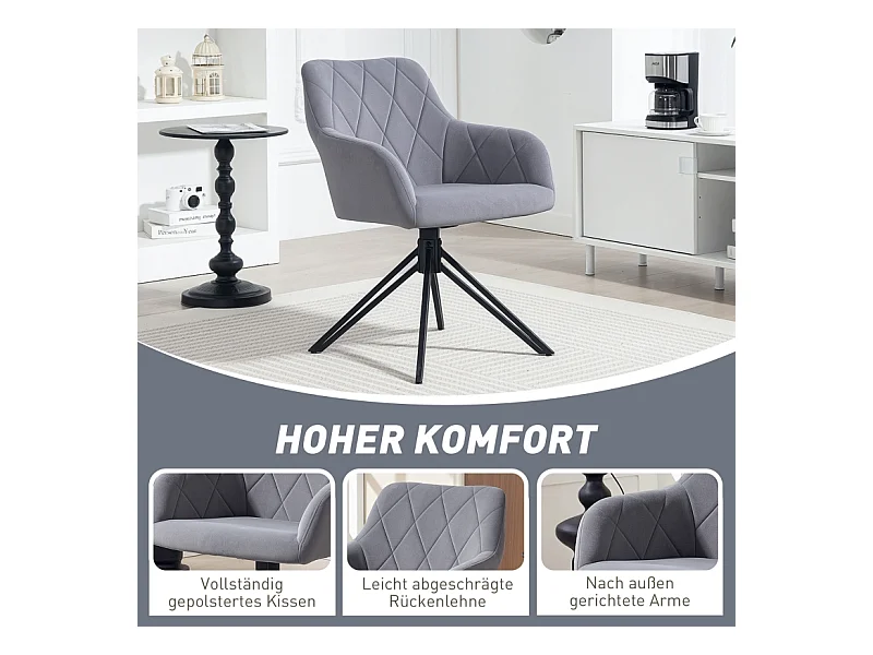 Chaise de salle à manger, avec accoudoirs, revêtement velours, design rétro, structure acier, gris, pour cuisine ou salon, 58x60,5x79 cm