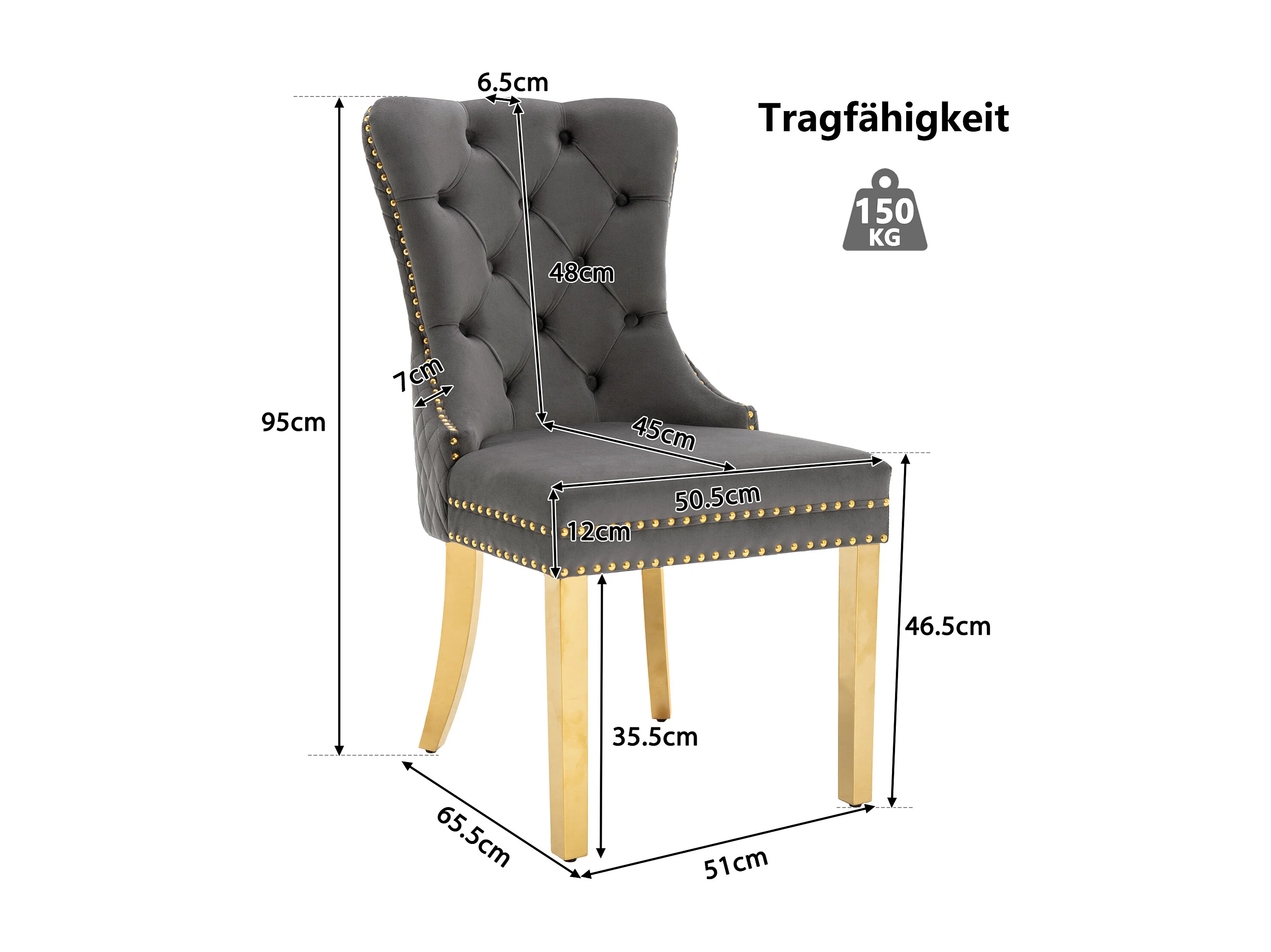 Chaise de salle à manger avec design unique, tissu velours, acier inoxydable doré, gris/or, (50.5x45x95 cm)