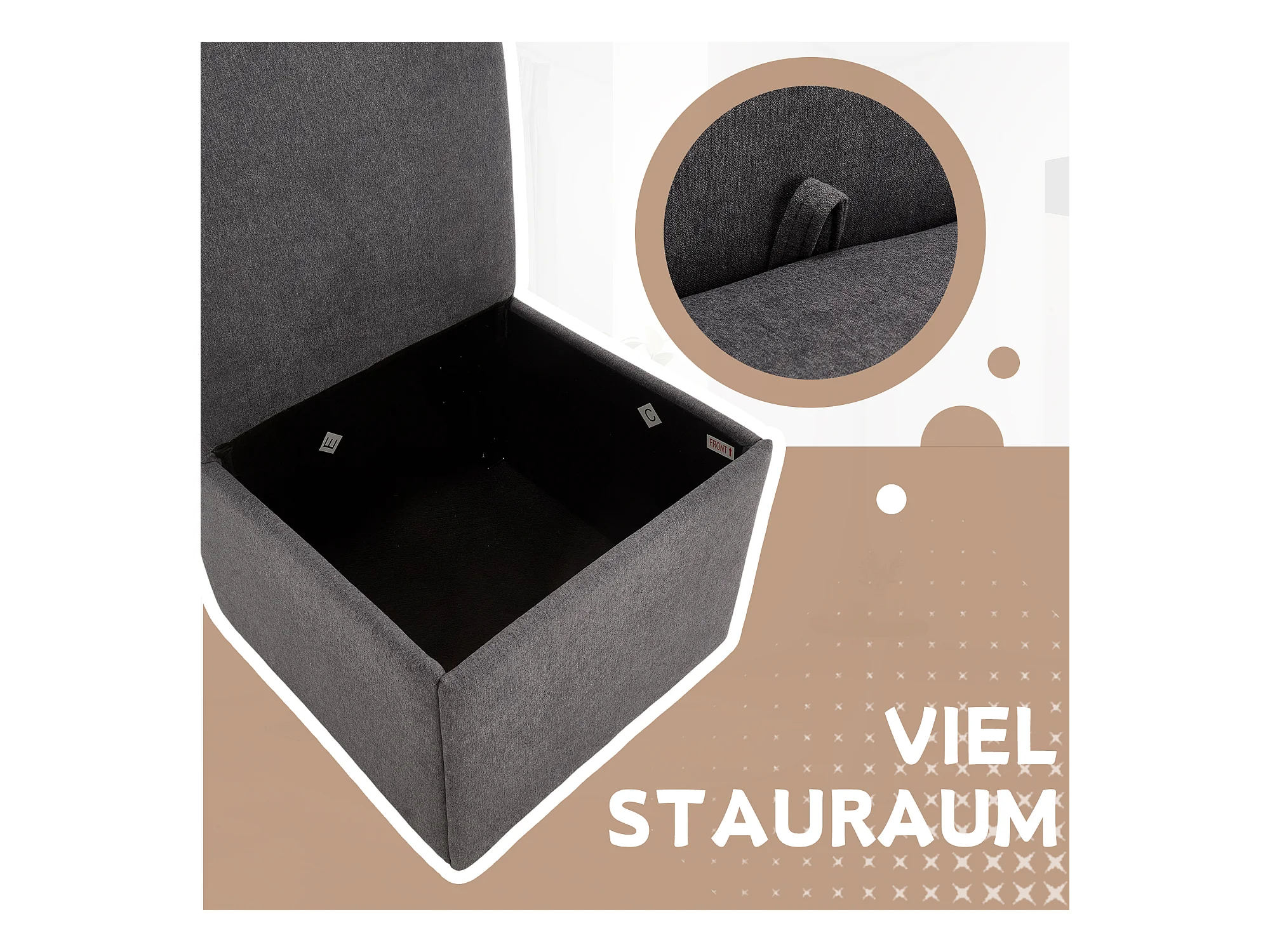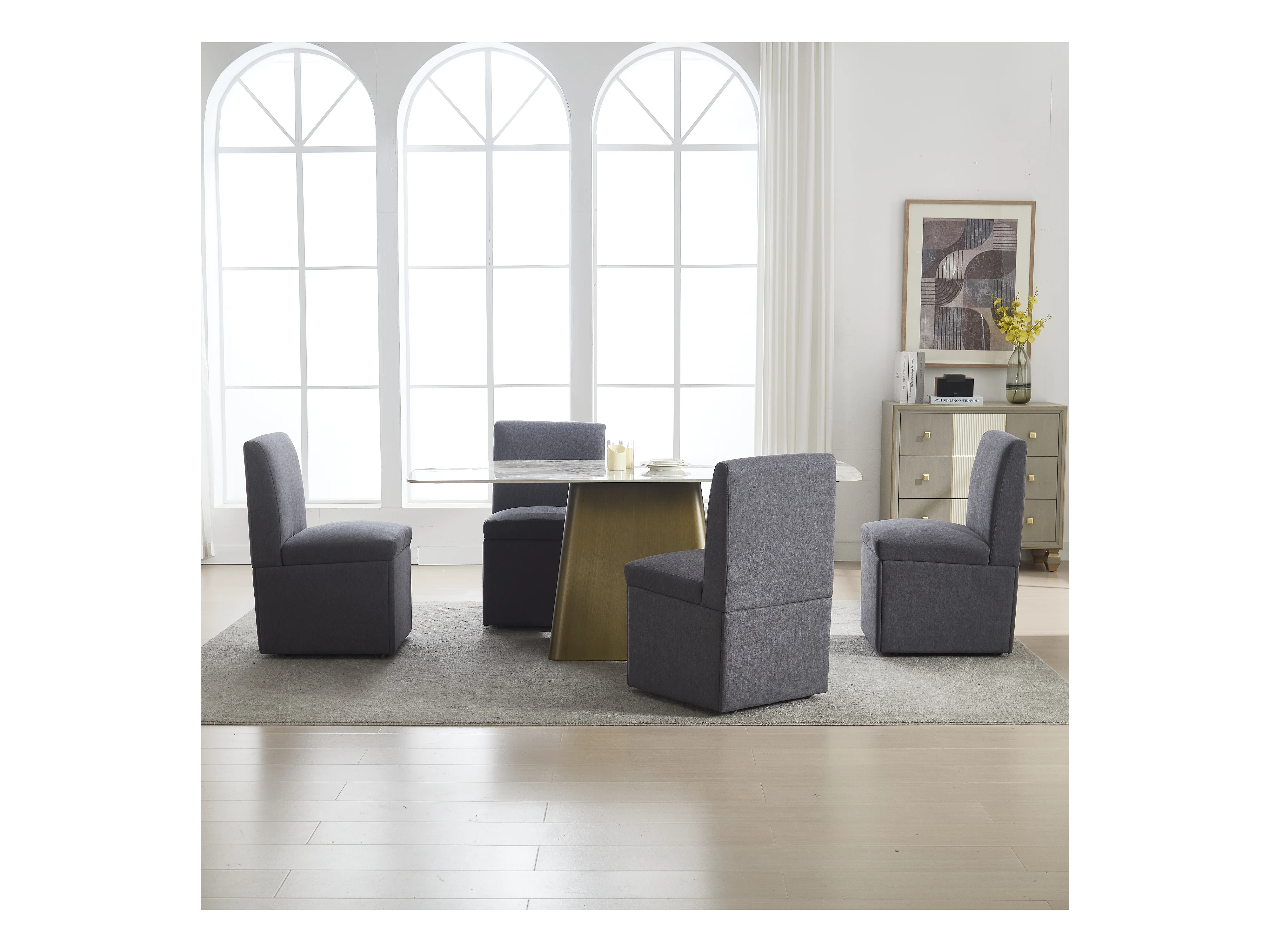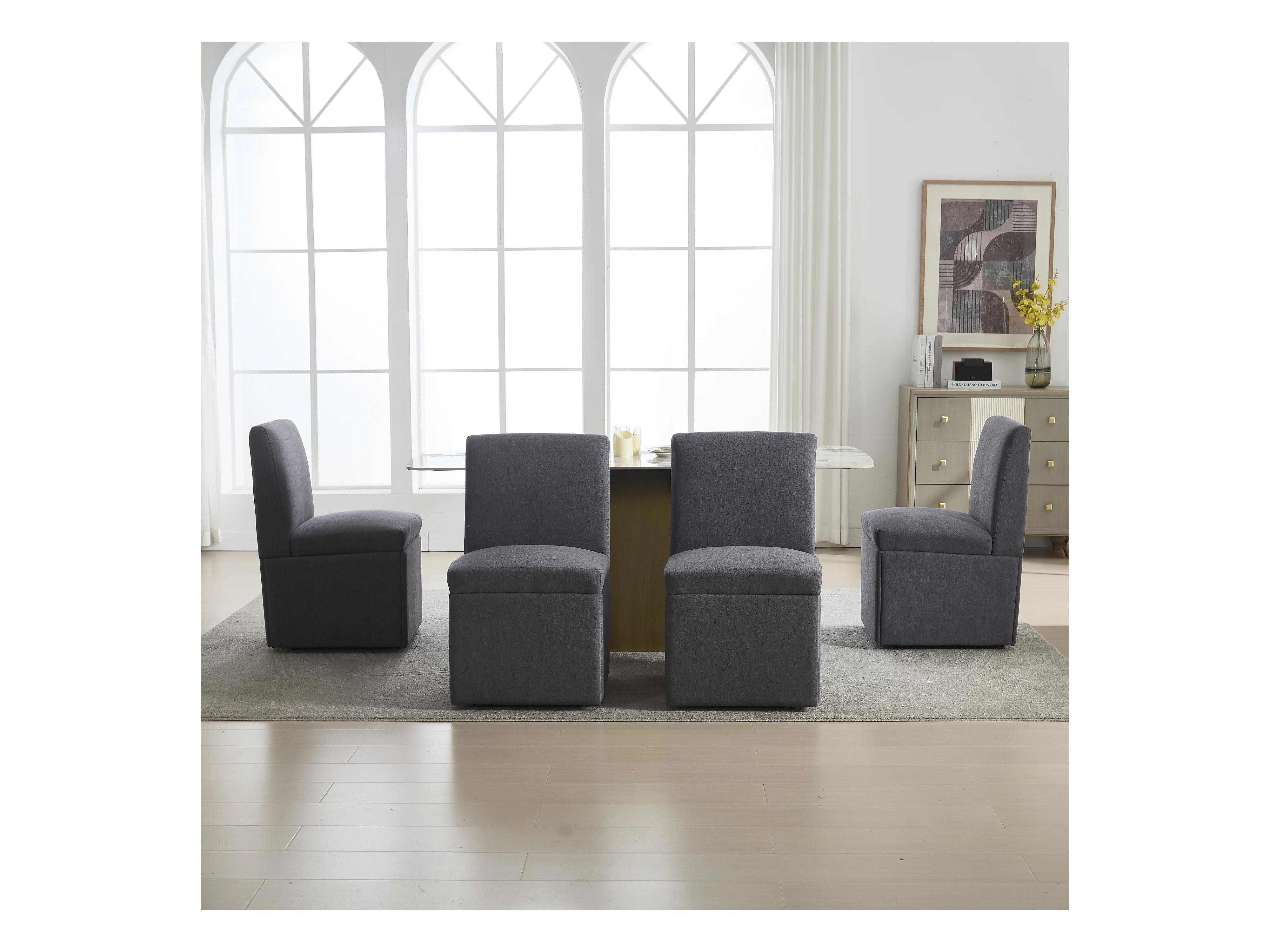 Chaise de salle à manger avec roulettes, fauteuil pivotant et rangement, tissu lin gris foncé, fauteuil moderne sans bras (50x59x86 cm)