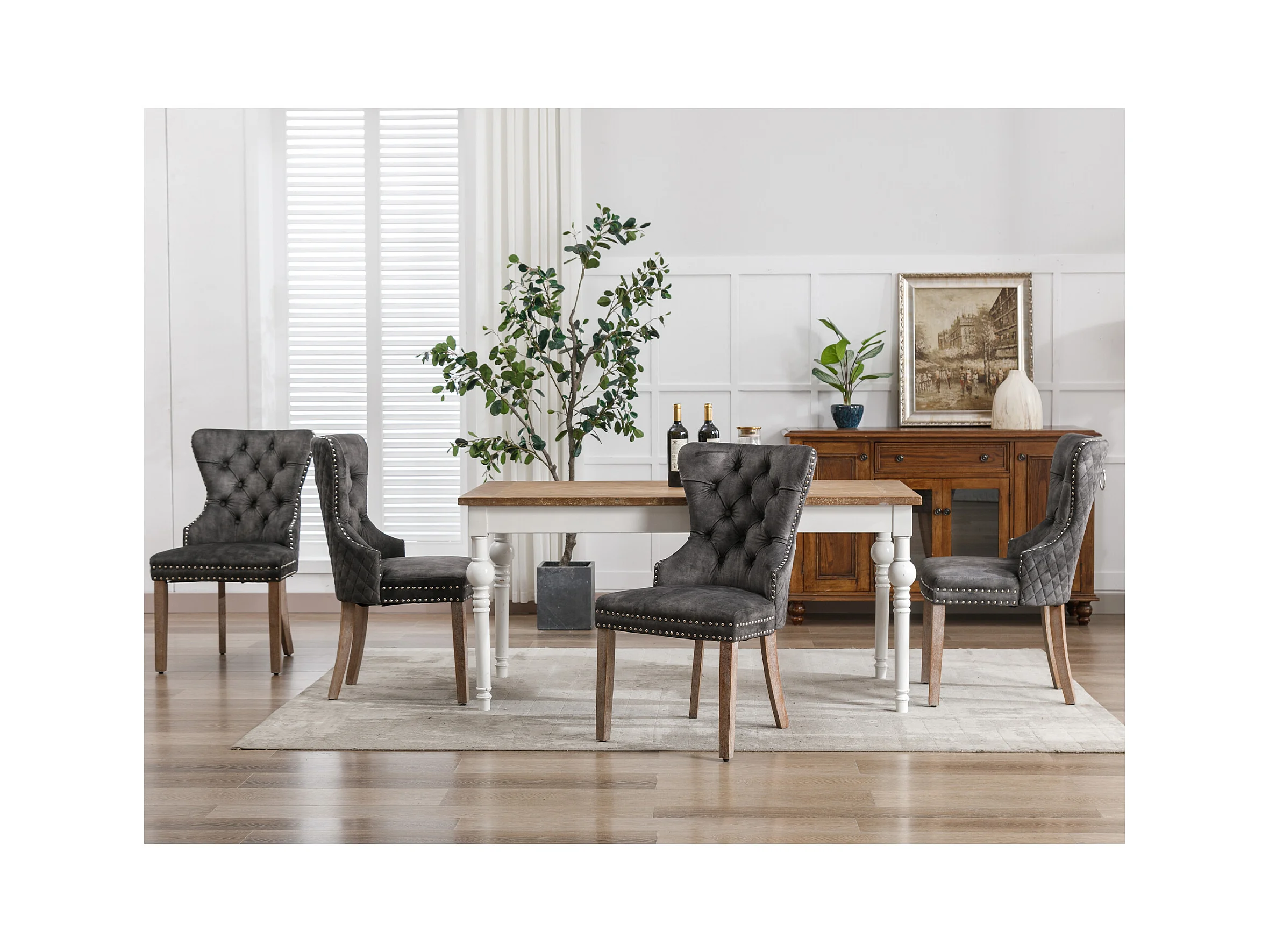 Chaise de salle à manger avec tirage circulaire au dos, en velours, pieds en bois massif, gris (53x46.5x95 cm)