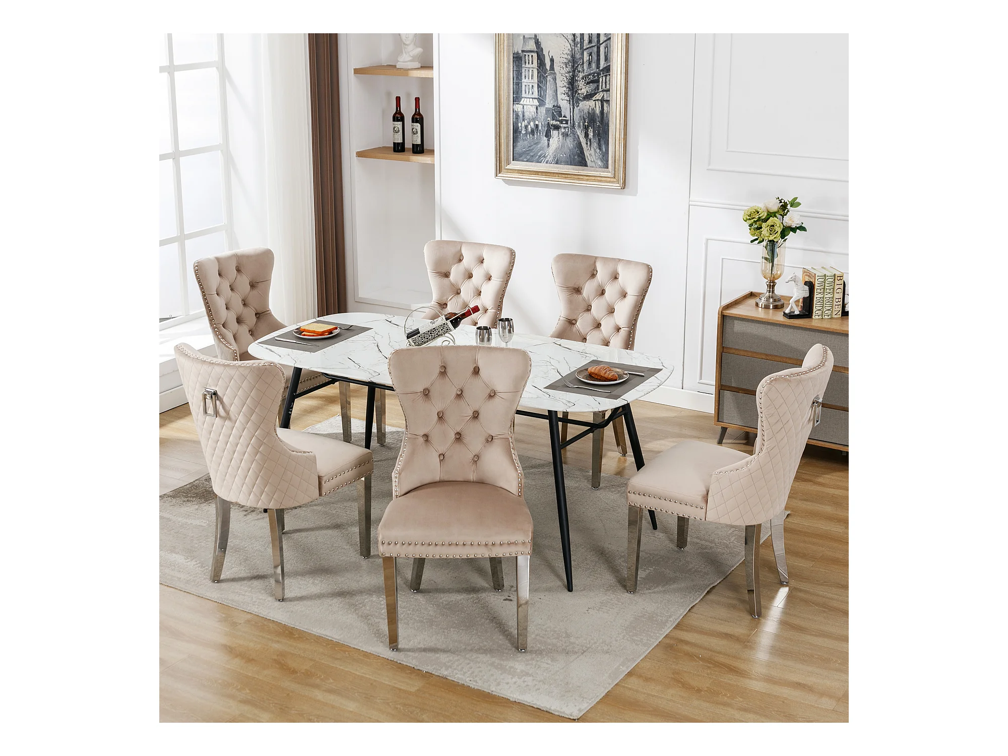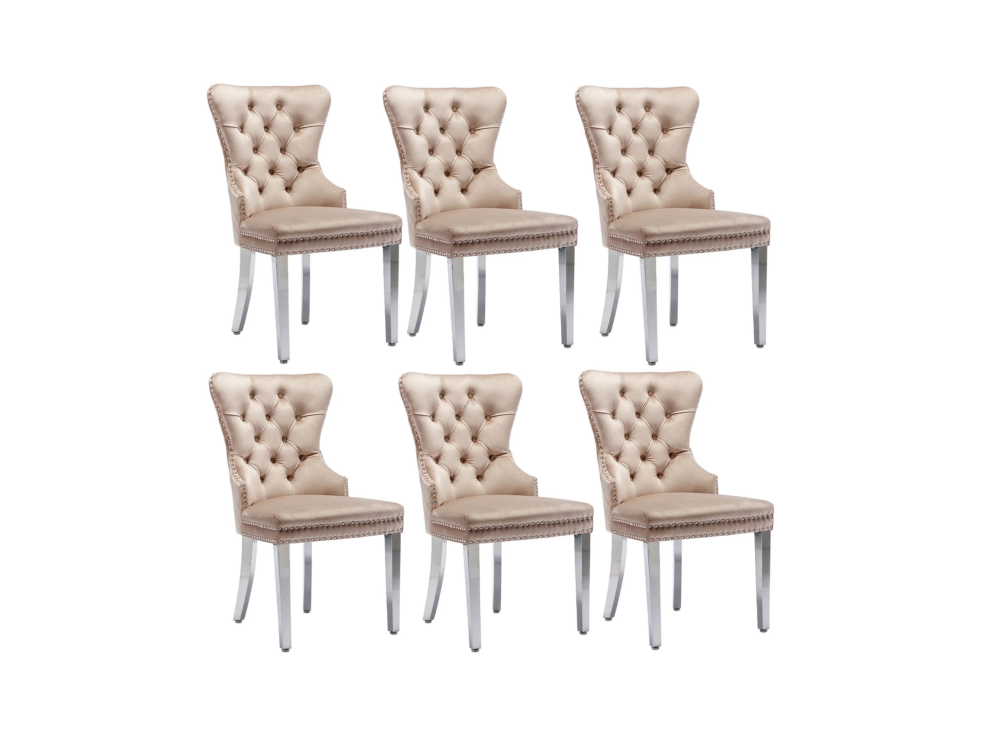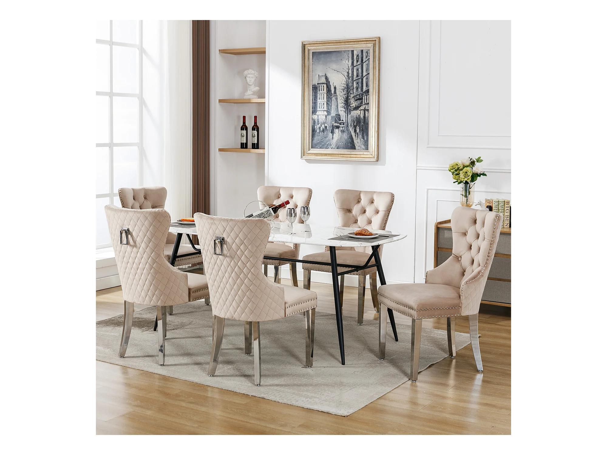 Chaise salle à manger velours pieds métal design élégant confortable pour cuisine salon beige lot de 6