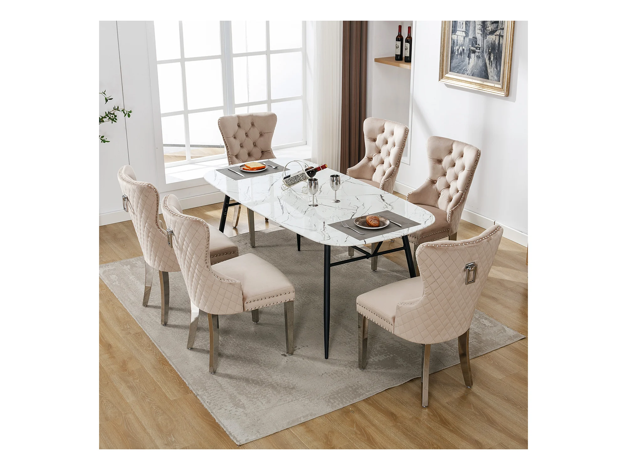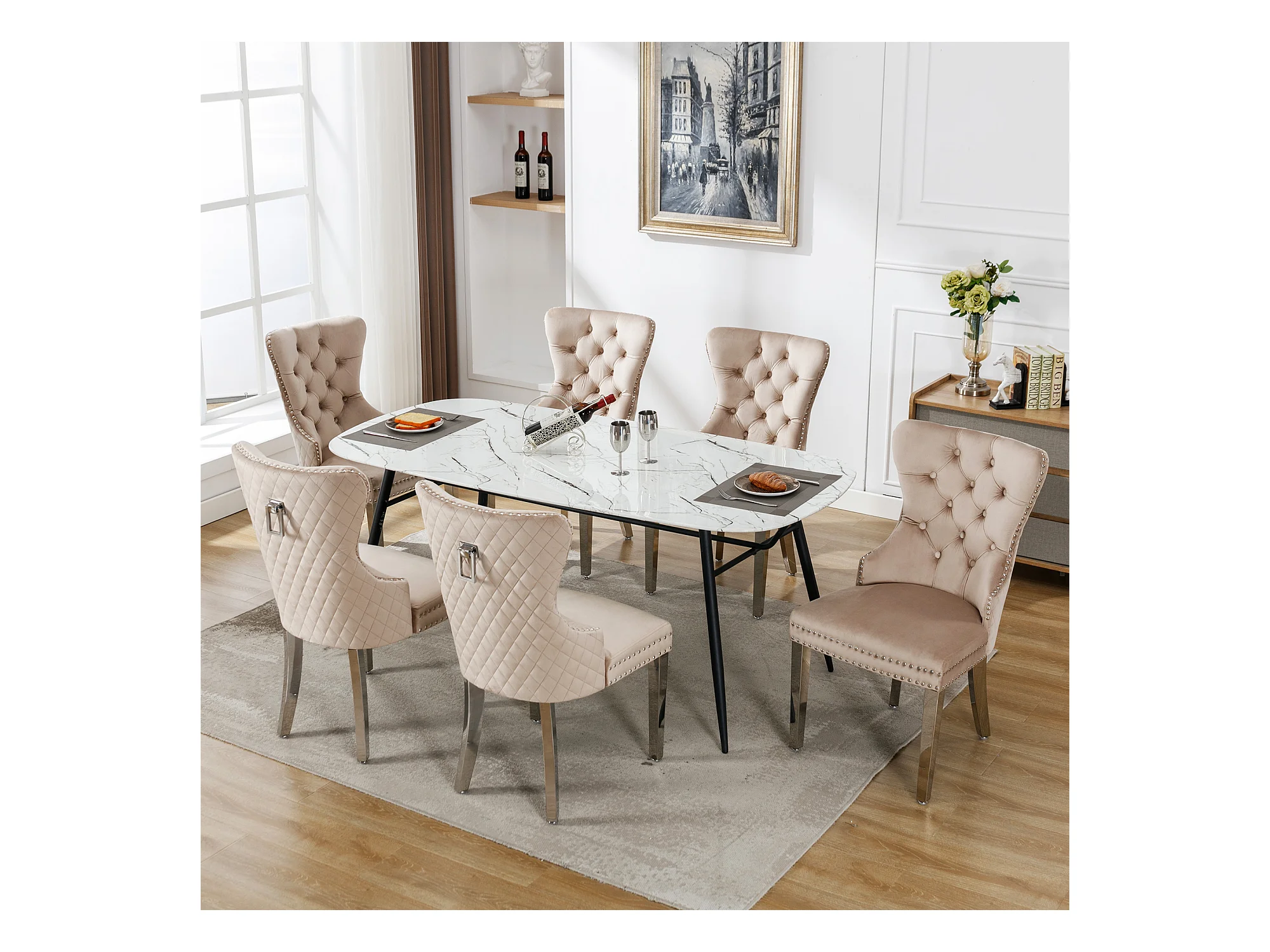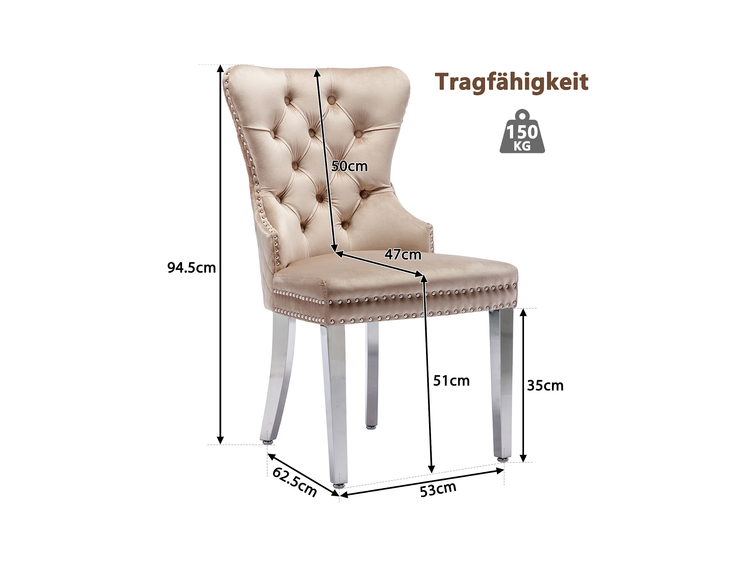 Chaise salle à manger velours pieds métal design élégant confortable pour cuisine salon beige lot de 6