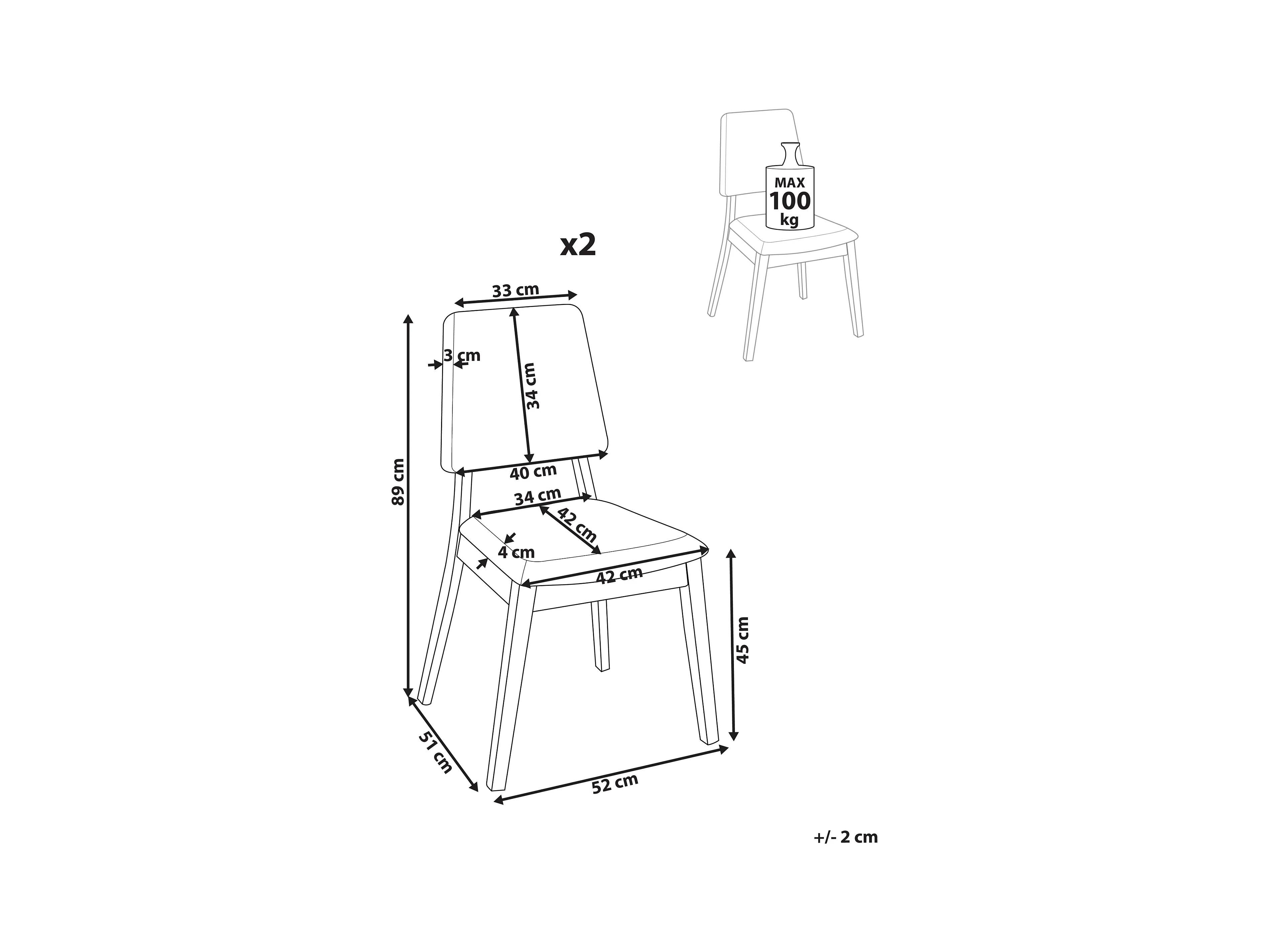 Lot de 2 chaises de salle à manger ORONO Bois Marron clair