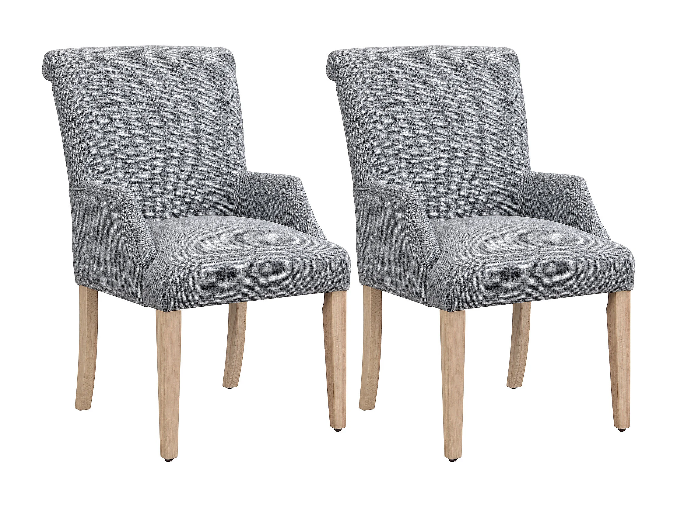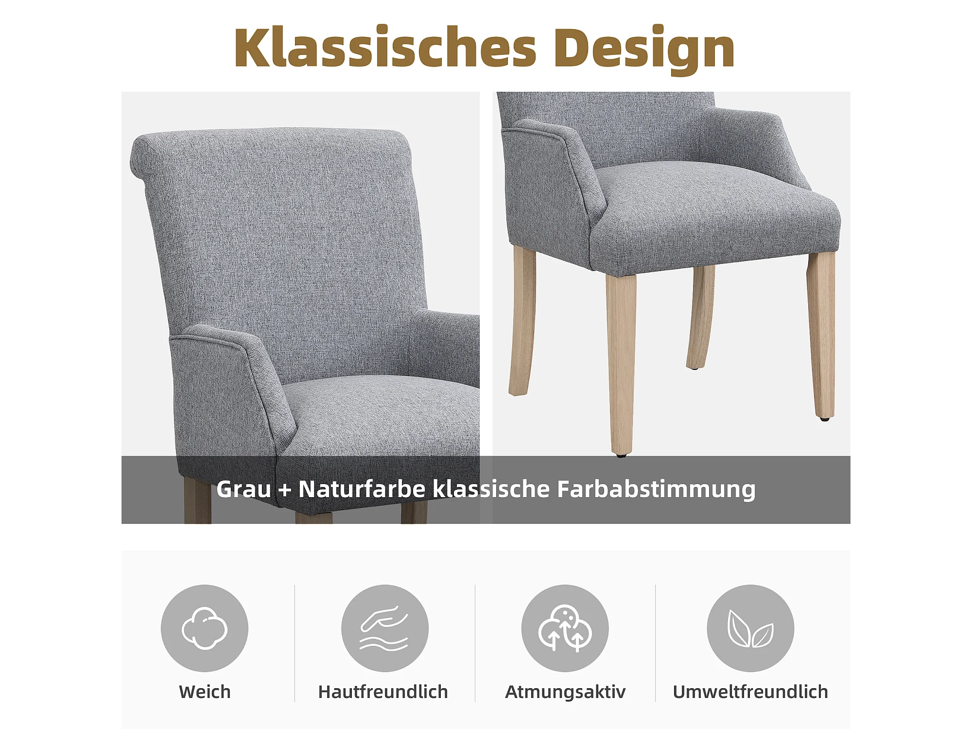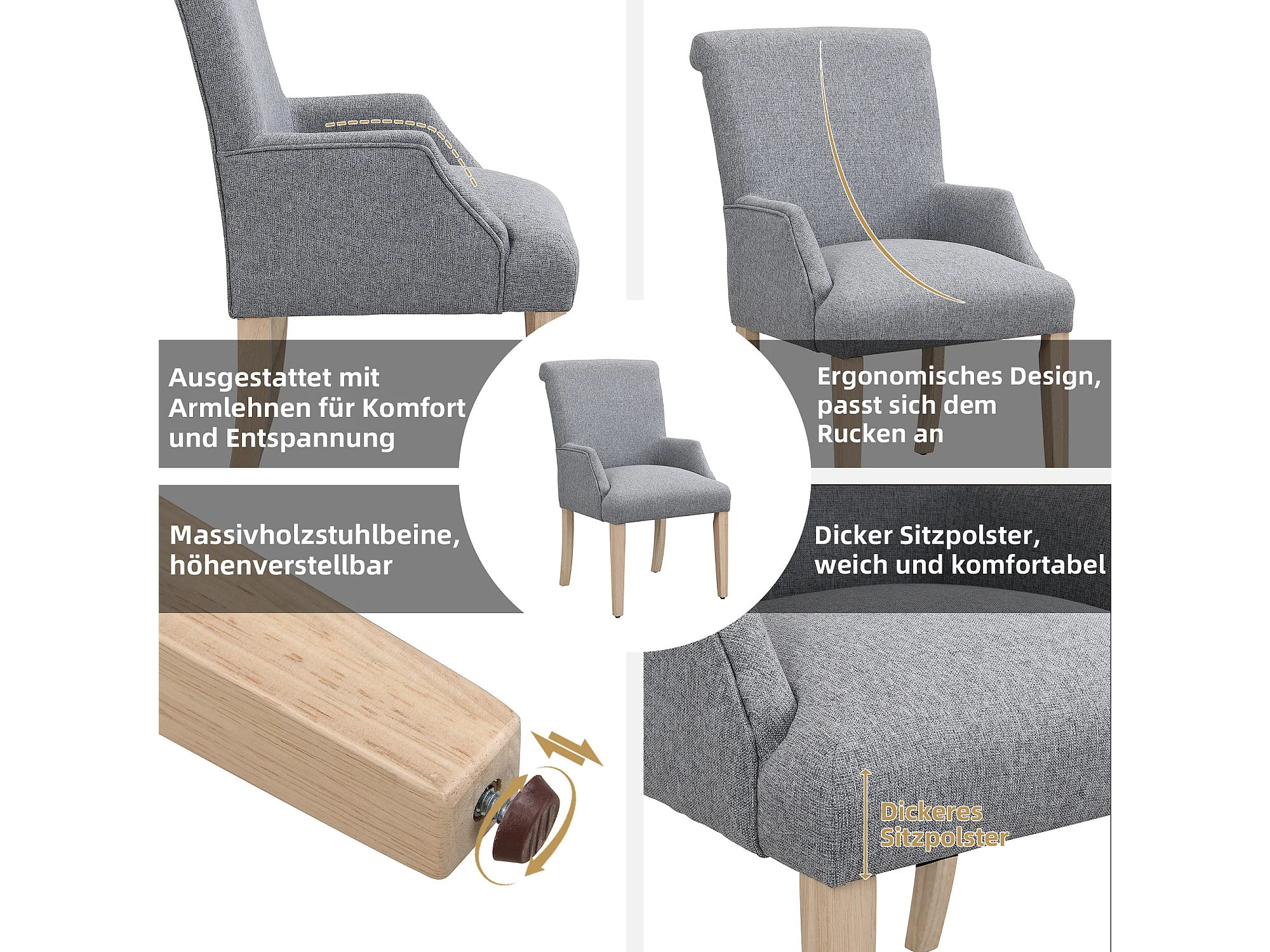 Chaise de salle à manger en lin, 2 pièces, avec pieds en bois massif et accoudoirs, gris