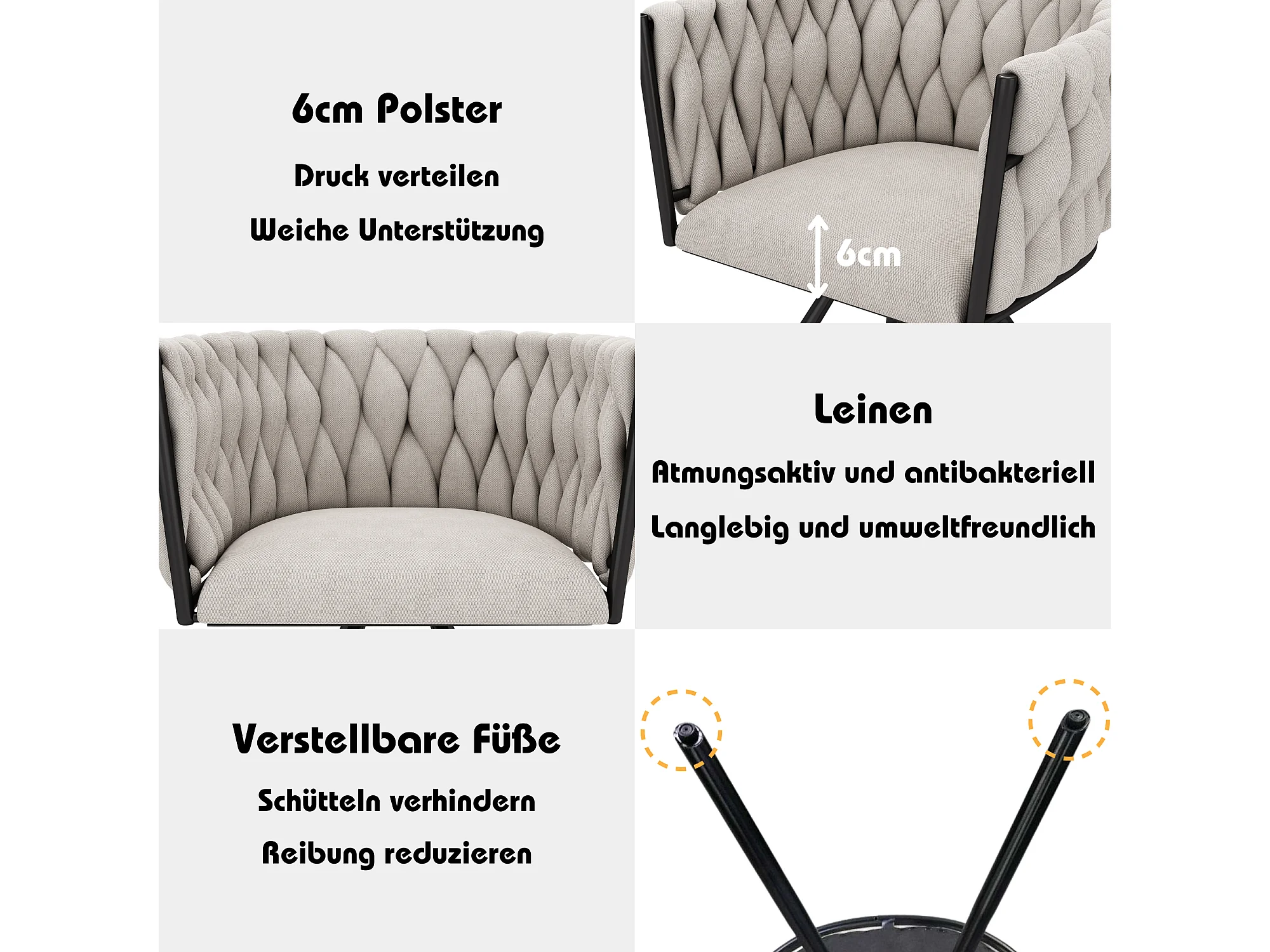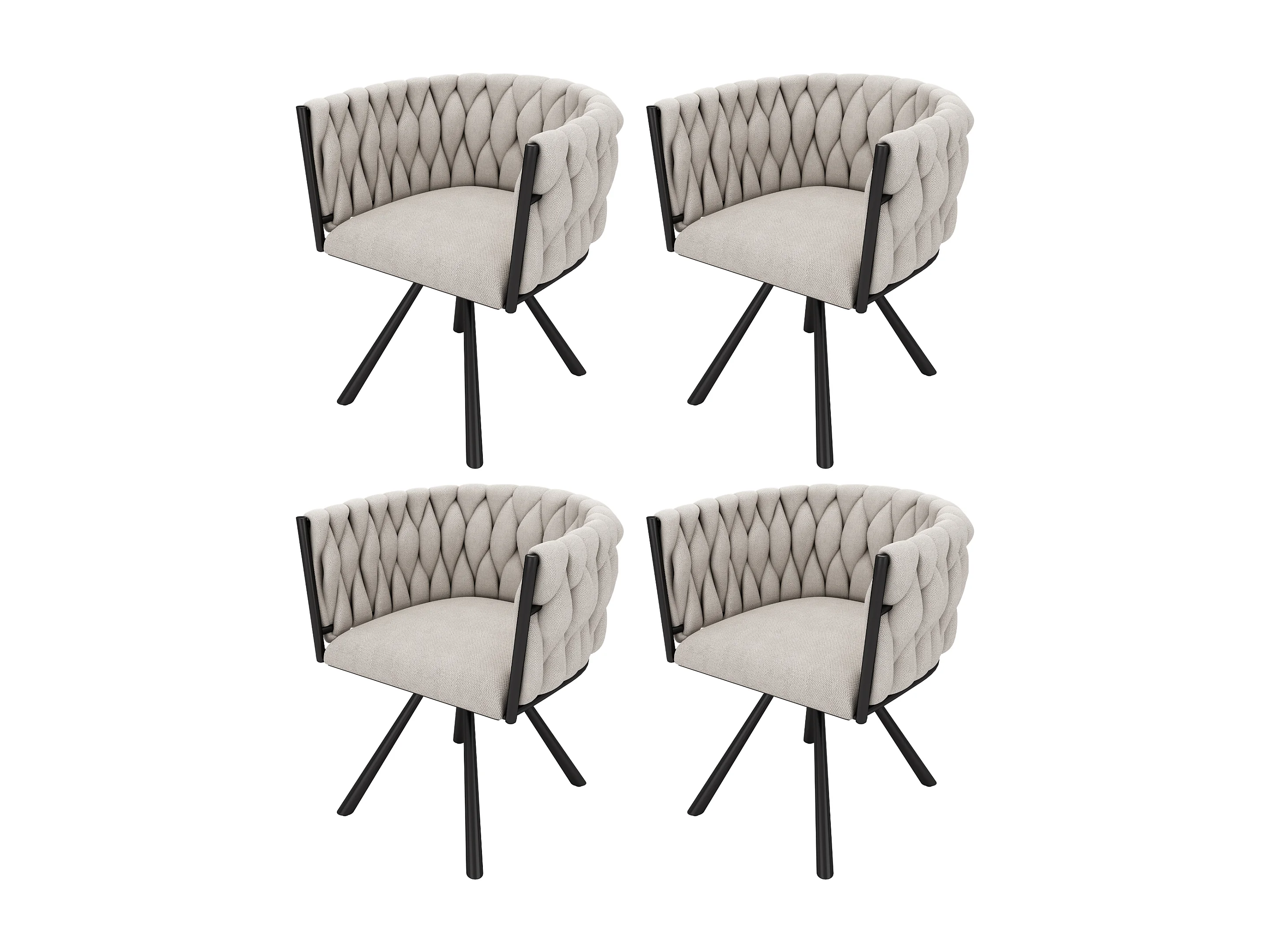 Chaise de salle à manger en lin, fauteuil de salon, chaise pivotante avec pieds en métal, beige et noir (L50 x P54 x H97 cm, set de 4)