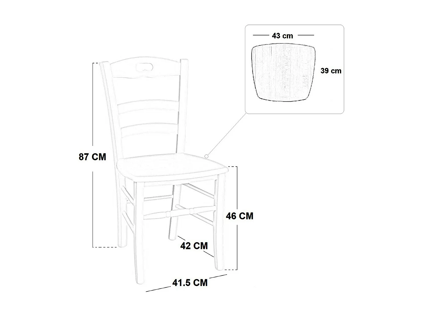 Chaise en bois de Venise avec assise en bois de cerisier massif