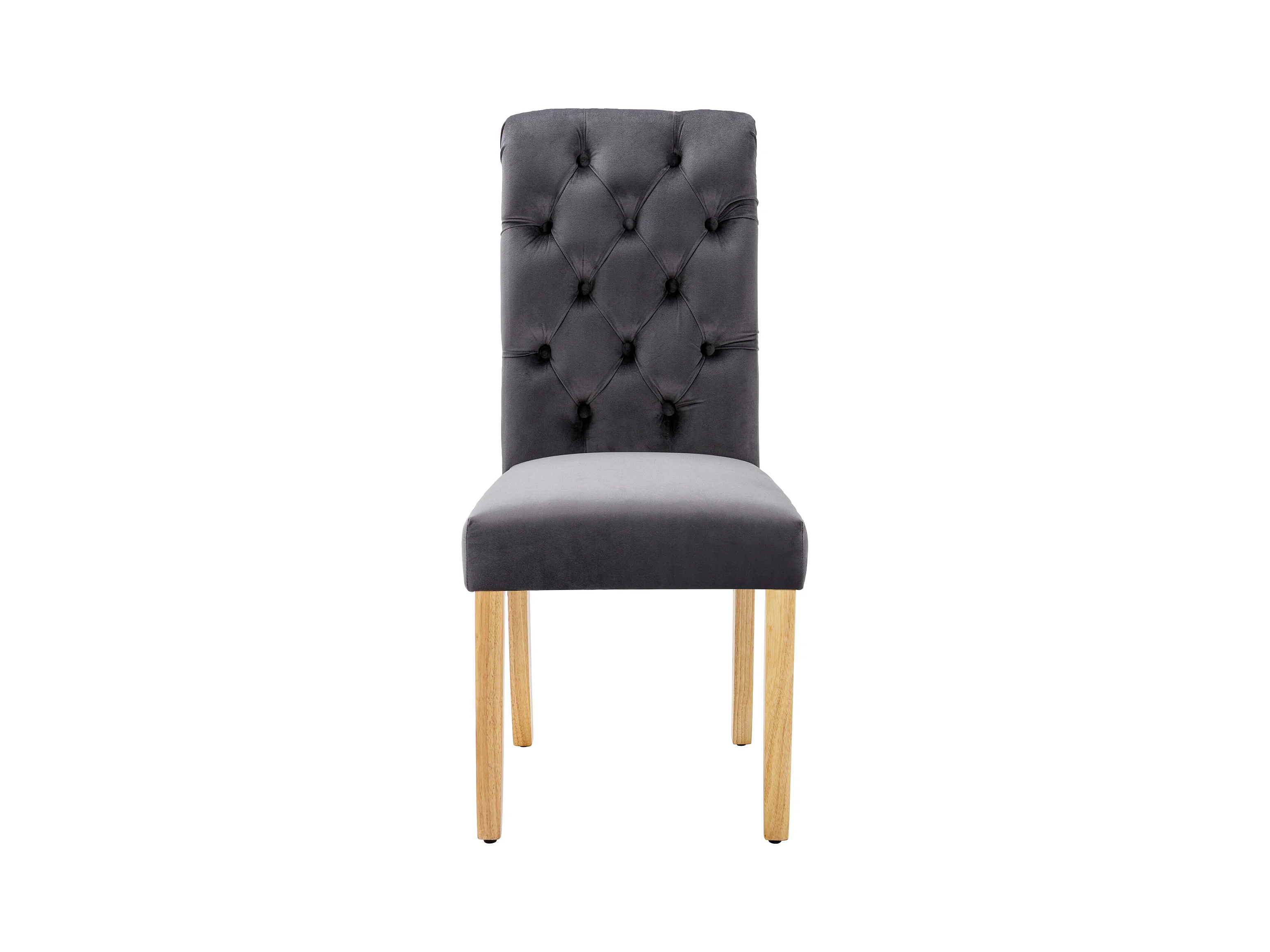 Chaise de salle à manger en velours, 2 pièces, pieds en chêne, boutons et clous métalliques, gris (L 61 x l 45 x H 100 cm)