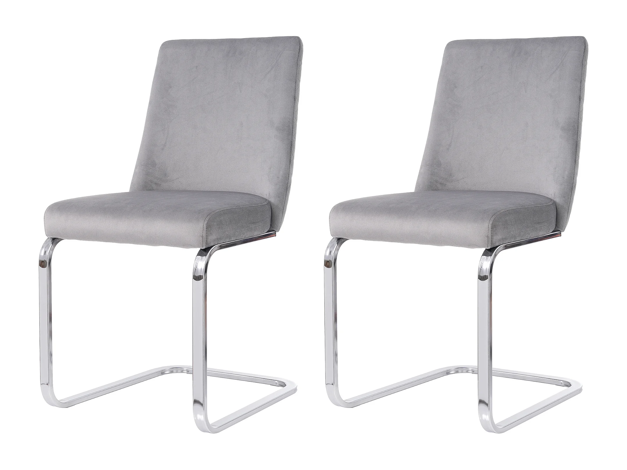 Chaise de salle à manger en velours, 2 pièces, design luxe, avec dos en diamant et pieds métalliques argentés, gris (47x47x90 cm)