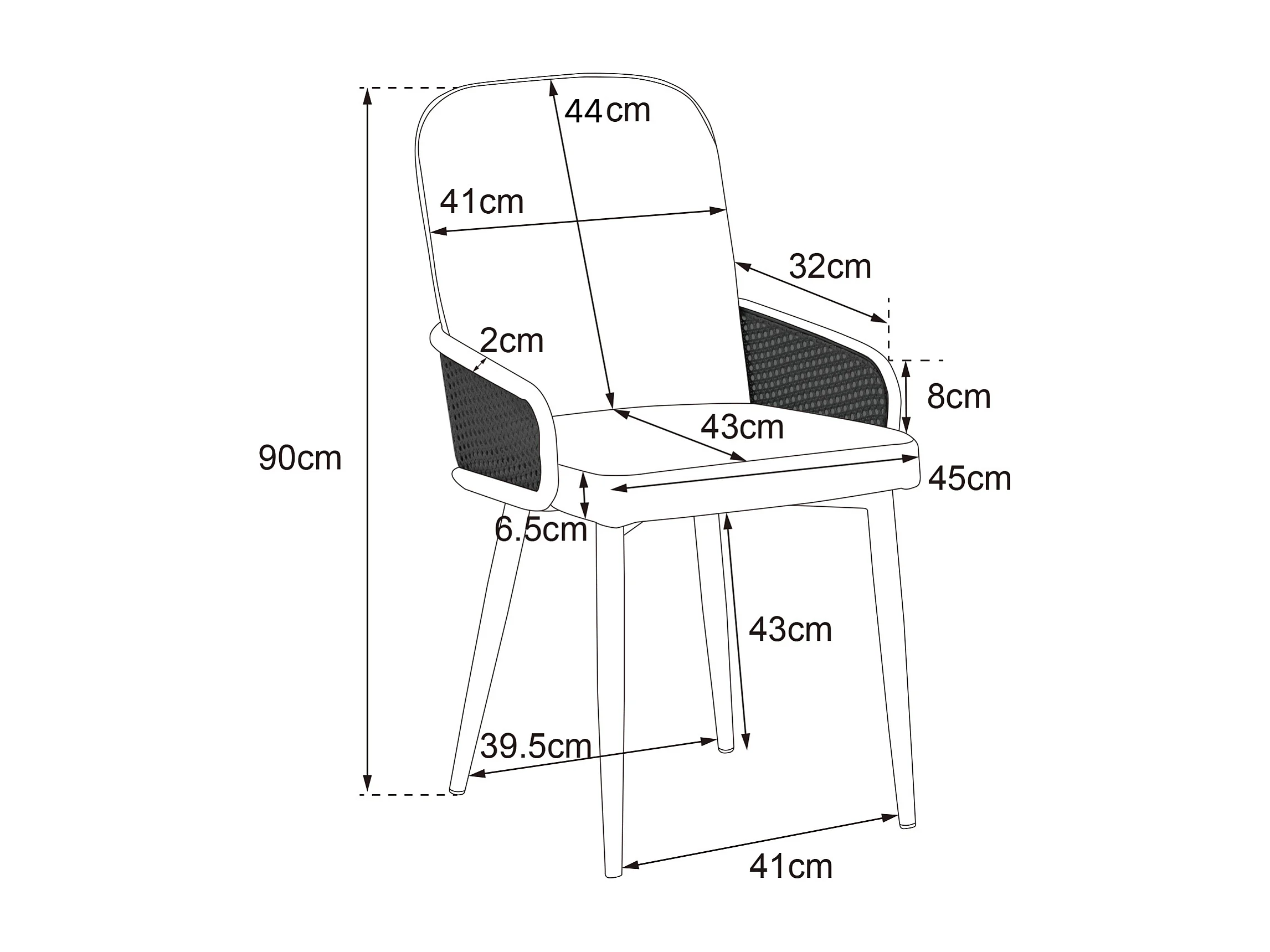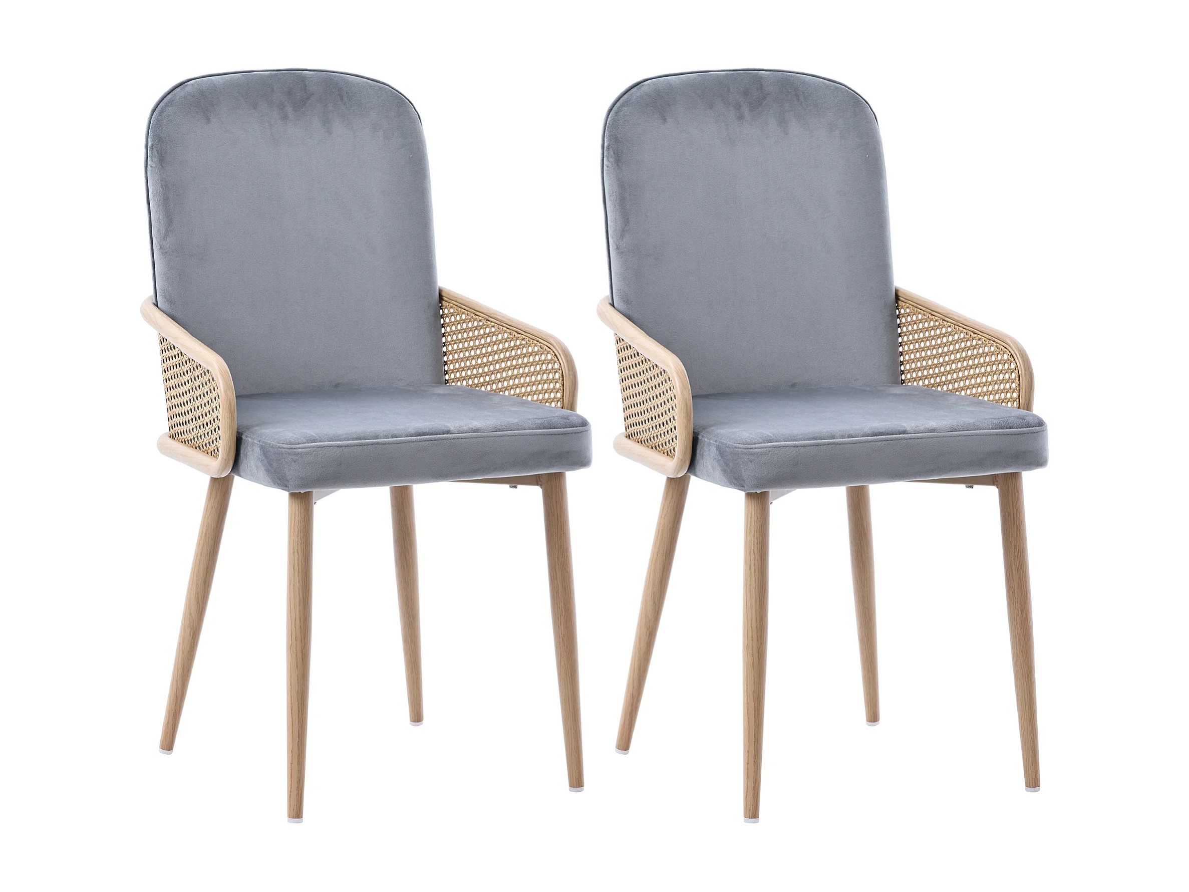 Chaise de salle à manger en velours, 2 pièces, design rattan, pieds métalliques effet bois, gris (61x59.5x52 cm)