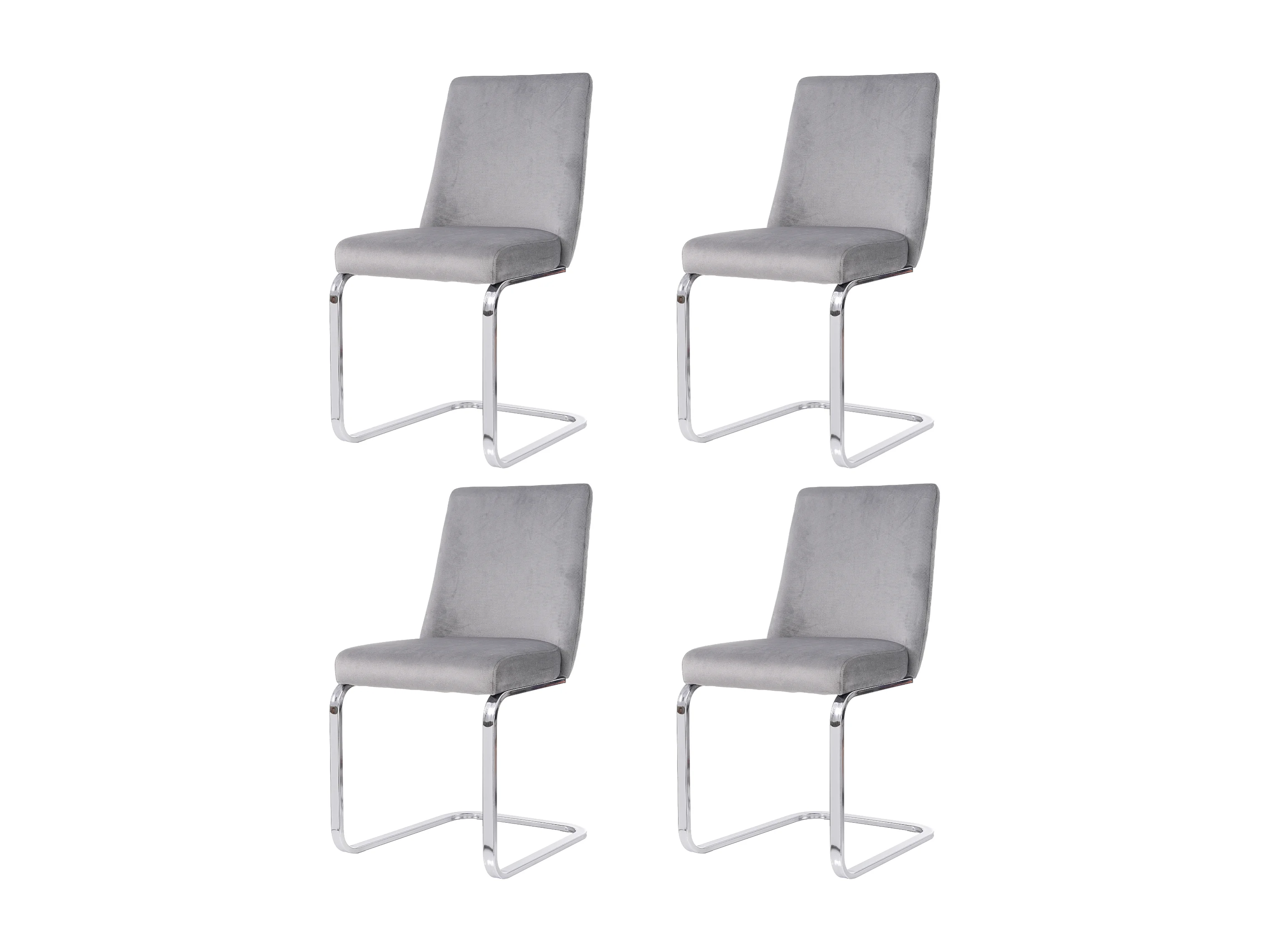 Chaise de Salle à Manger en Velours, 4 pièces, Design Diamant, Métal Argenté, Gris (47x63x85 cm)