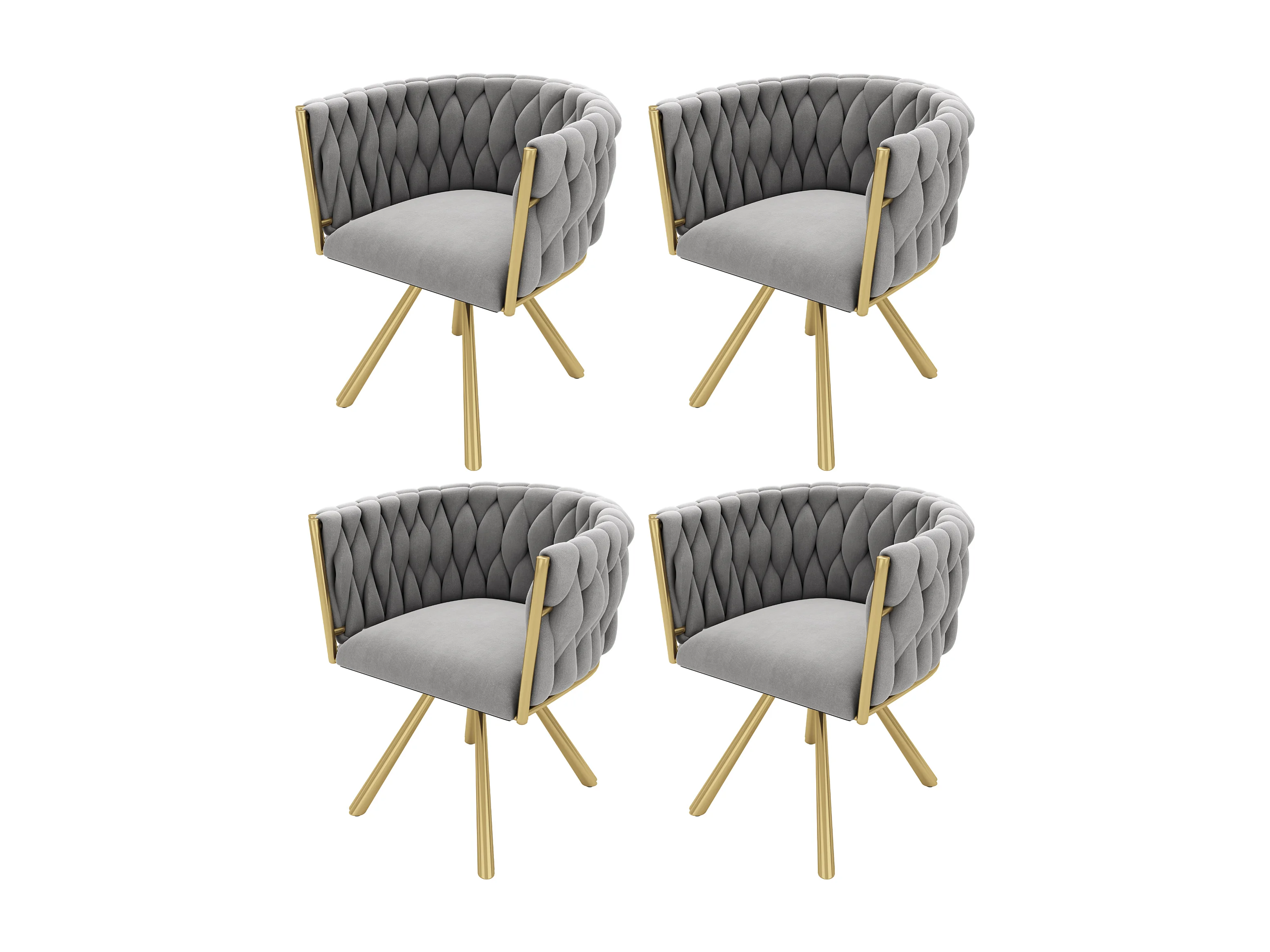 Chaise de salle à manger en velours, 4 pièces, design moderne, métal doré, gris (50x45x91 cm)