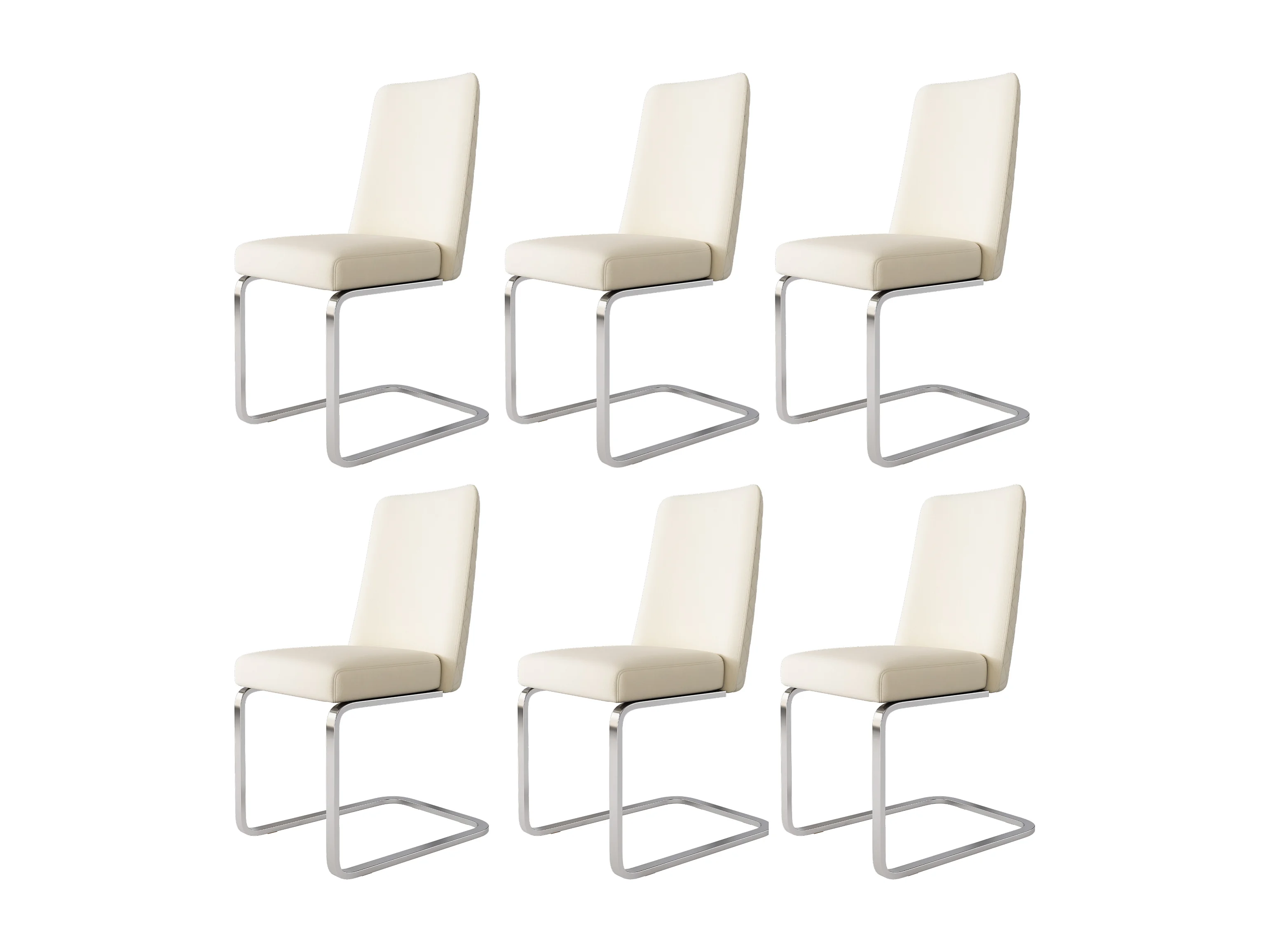 Chaise de salle à manger en velours, 6 pièces, design luxe, dos en diamant, pieds métalliques argentés, beige (47x47x90 cm)