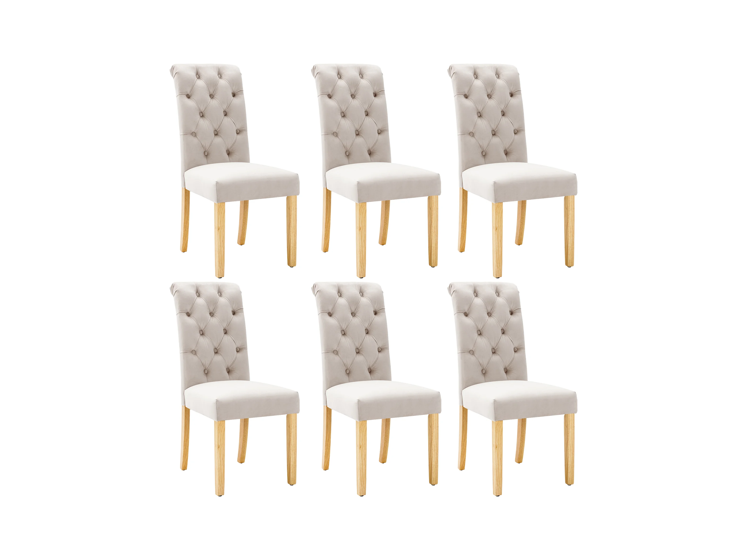 Chaise de salle à manger en velours, 6 pièces, pieds en chêne, boutons et clous métalliques, beige (L 104.67 x l 46.99 x H 36.2 cm)